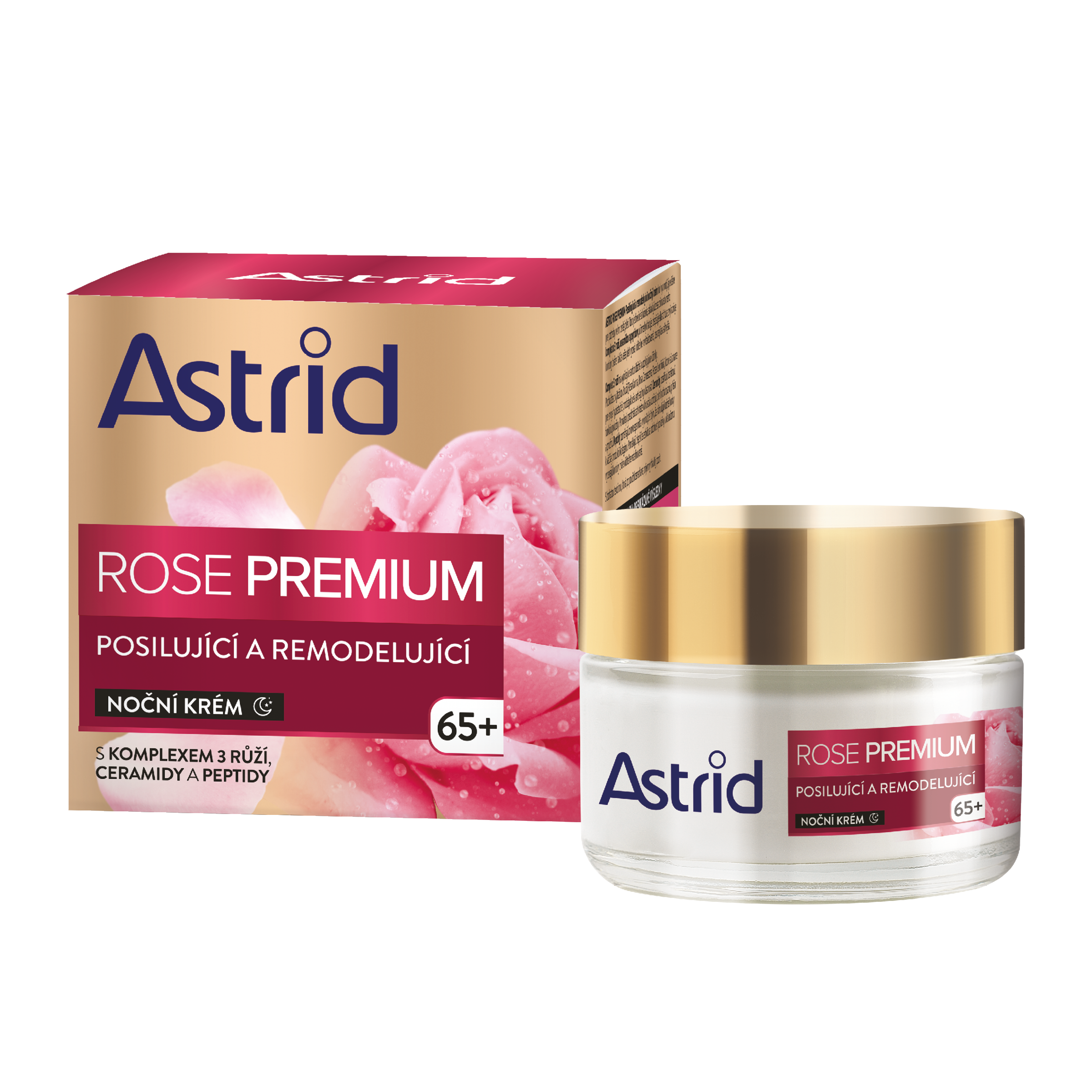 Astrid Rose Premium Posilující a remodelující noční krém byl vyvinutý speciálně pro potřeby velmi zralé pleti. Toto jedinečné složení, skládající se z inovativního komplexu 3 růží, ceramidů a peptidů, účinně hydratuje, zlepšuje elasticitu a zvýrazňuje kontury obličeje, takže vaše pleť vypadá viditelně revitalizovaná, pevnější a silnější. Komplex 3 růží má vynikající antioxidační a zklidňující účinky. Pochází z výtažků 3 růží (Rosa Canina, Rosa Damascena, Rosa Centifolia), které jsou známé pro své hydratační, protizánětlivé a anti-aging vlastnosti. Ceramidy posilují bariérovou funkci pokožky. Pomáhají předcházet ztrátě vlhkosti a udržují pleť hydratovanou, plnější a pružnou. Peptidy pomáhají znovu zpevnit a vyplnit pleť tím, že stimulují kožní buňky k větší produkci kolagenu. Pomáhají zlepšit elasticitu a odolnost pokožky, díky čemuž vypadají kontury obličeje viditelně redefinované. S bohatou texturou, která po použití zanechává příjemný hladký pocit.