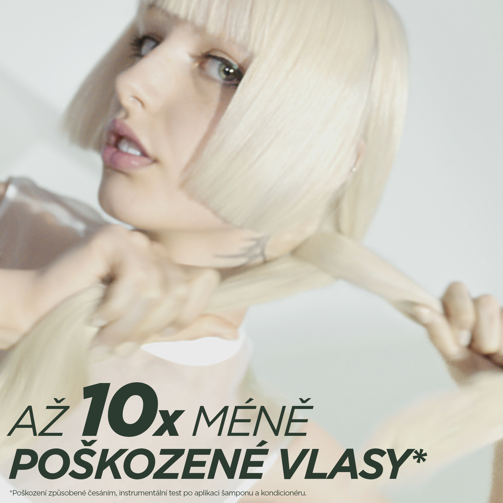 (1) Instrumentální test po 10 aplikacích kompletní rutiny řady Goodbye Damage: šamponu, kondicionéru a péče.