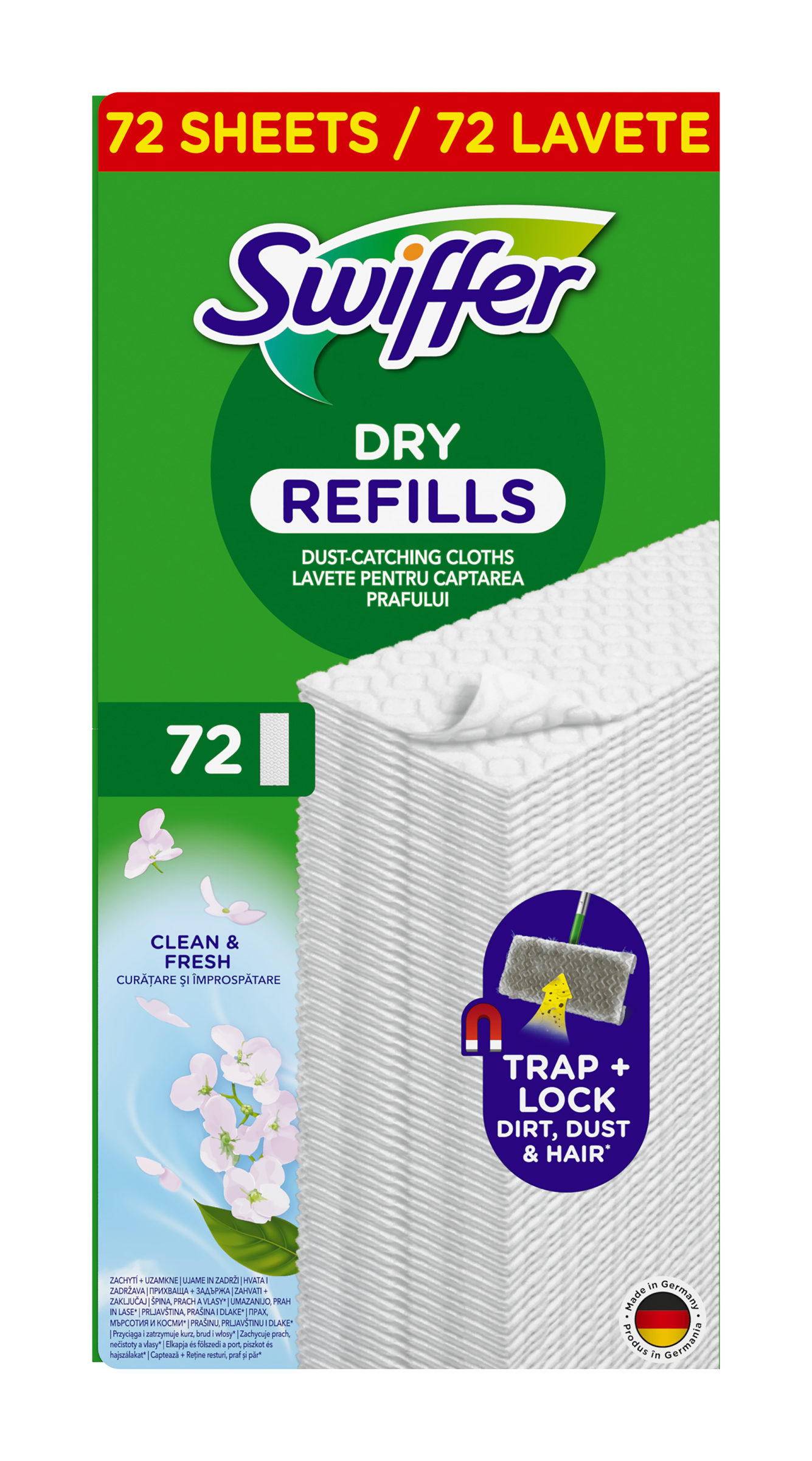 - Obsahuje 72 prachovek na podlahu Swiffer Dry Clean & Fresh