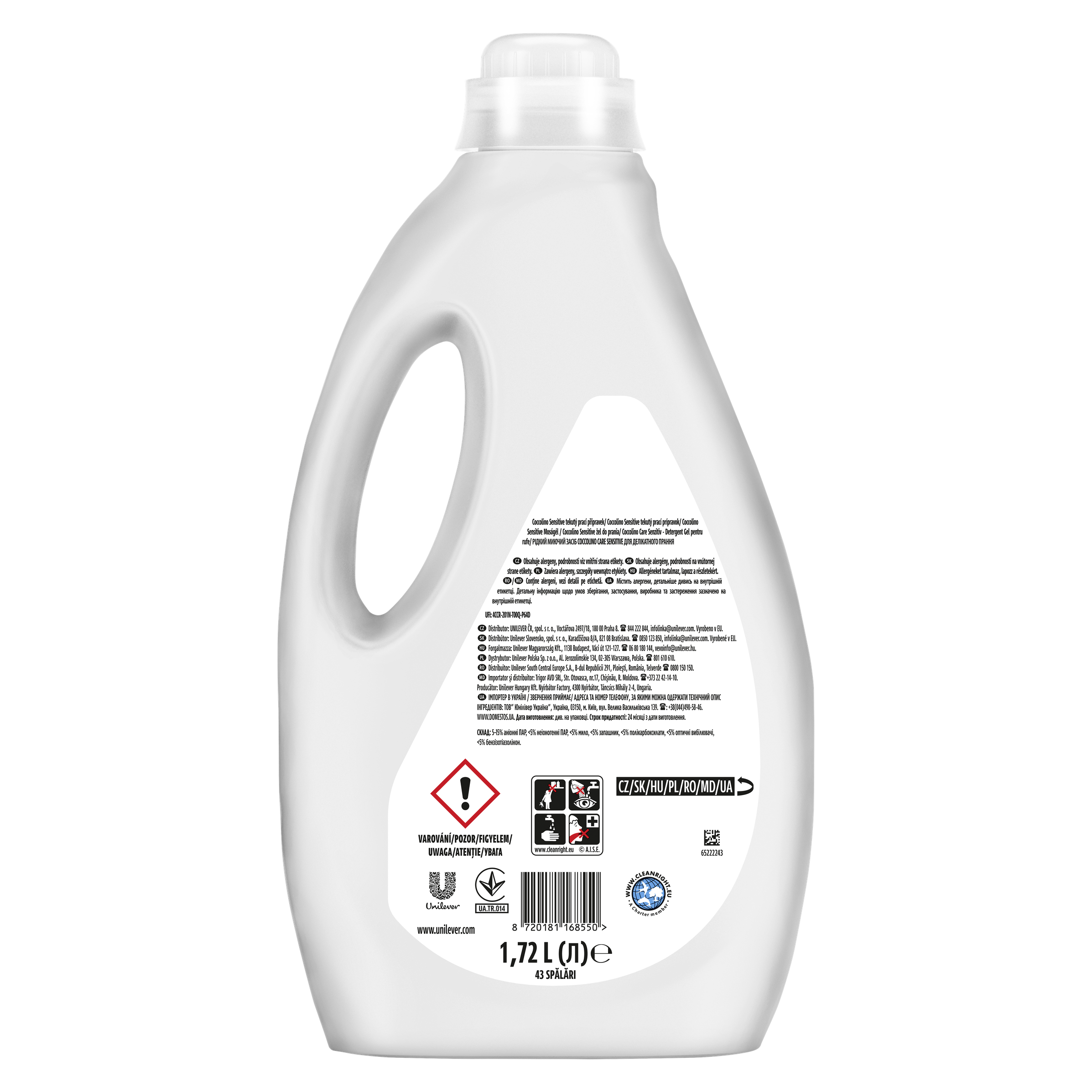 VAROVÁNÍ Coccolino Sensitive tekutý prací přípravek Způsobuje vážné podráždění očí. Může vyvolat alergickou kožní reakci. Škodlivý pro vodní organismy, s dlouhodobými účinky. Uchovávejte mimo dosah dětí. Používejte ochranné rukavice. PŘI ZASAŽENÍ OČÍ: Několik minut opatrně vyplachujte vodou. Vyjměte kontaktní čočky, jsou-li nasazeny a pokud je lze vyjmout snadno. Pokračujte ve vyplachování. PŘI STYKU S KŮŽÍ: Omyjte velkým množstvím vody. Obsahuje 2-methyl-2,3-dihydrogenisothiazol-3-on, 2-n-oktyl-4-isothiazolin-3-on, 2-methoxy-4-(prop-1-en-1-yl)fenol.