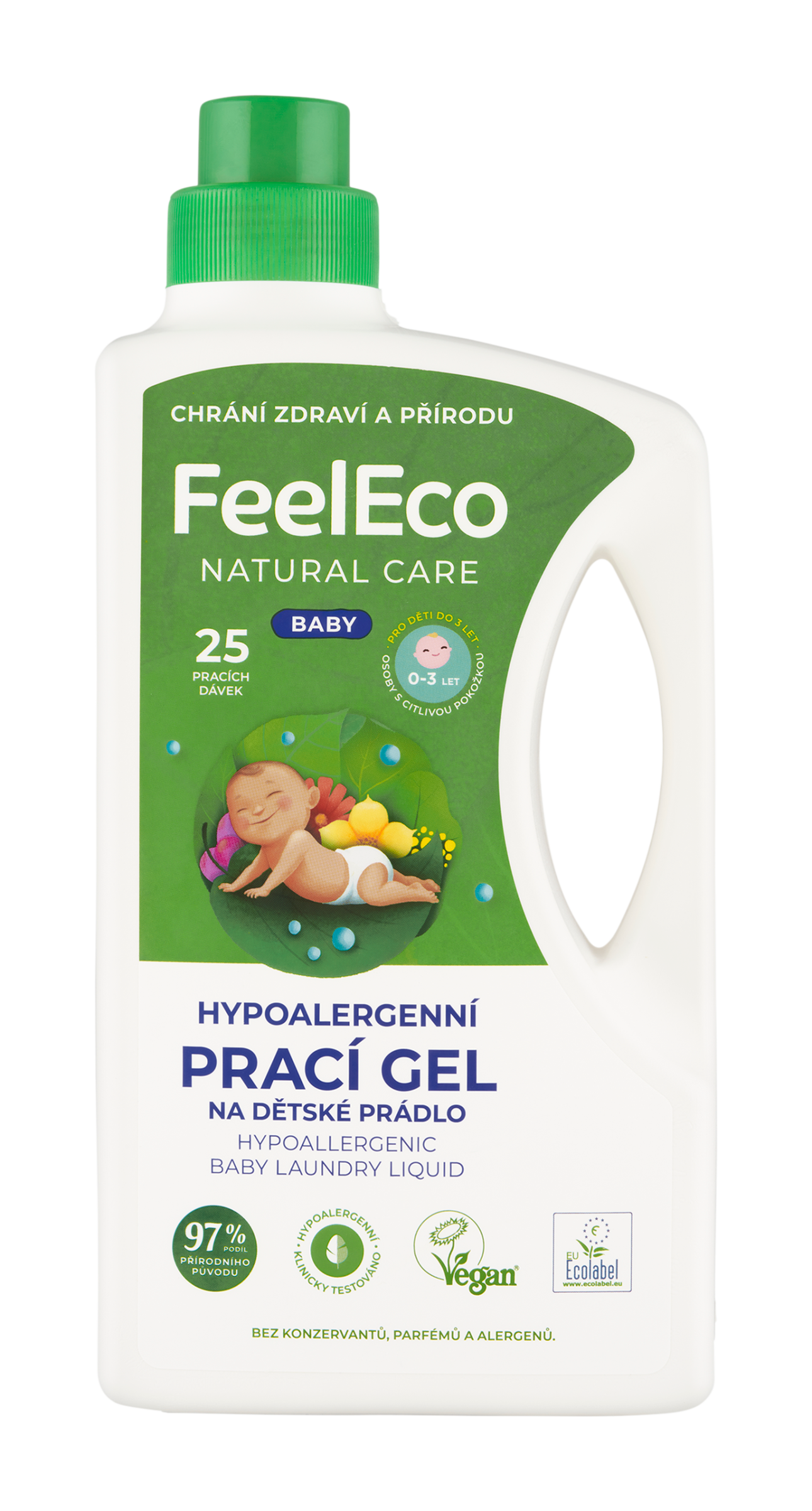 Neparfemovaný koncentrovaný tekutý prostředek určený pro praní dětského prádla, také prádla kojenců a osob s citlivou pokožkou. Je vhodný na bílé, barevné i tmavé prádlo. Díky svému složení a směsi enzymů je velmi efektivní již při nízkých teplotách (např. 30 °C) a složky pro ochranu barev zabezpečí, že vaše prádlo bude vypadat stejně i po opakovaném vyprání. Neobsahuje žádné parfémy, alergeny, konzervanty, a tím pomáhá předcházet vzniku nežádoucích dermatologických reakcí při kontaktu pokožky s pranými tkaninami. Všechny obsažené aktivní složky jsou rostlinného původu a jsou snadno biologicky rozložitelné.