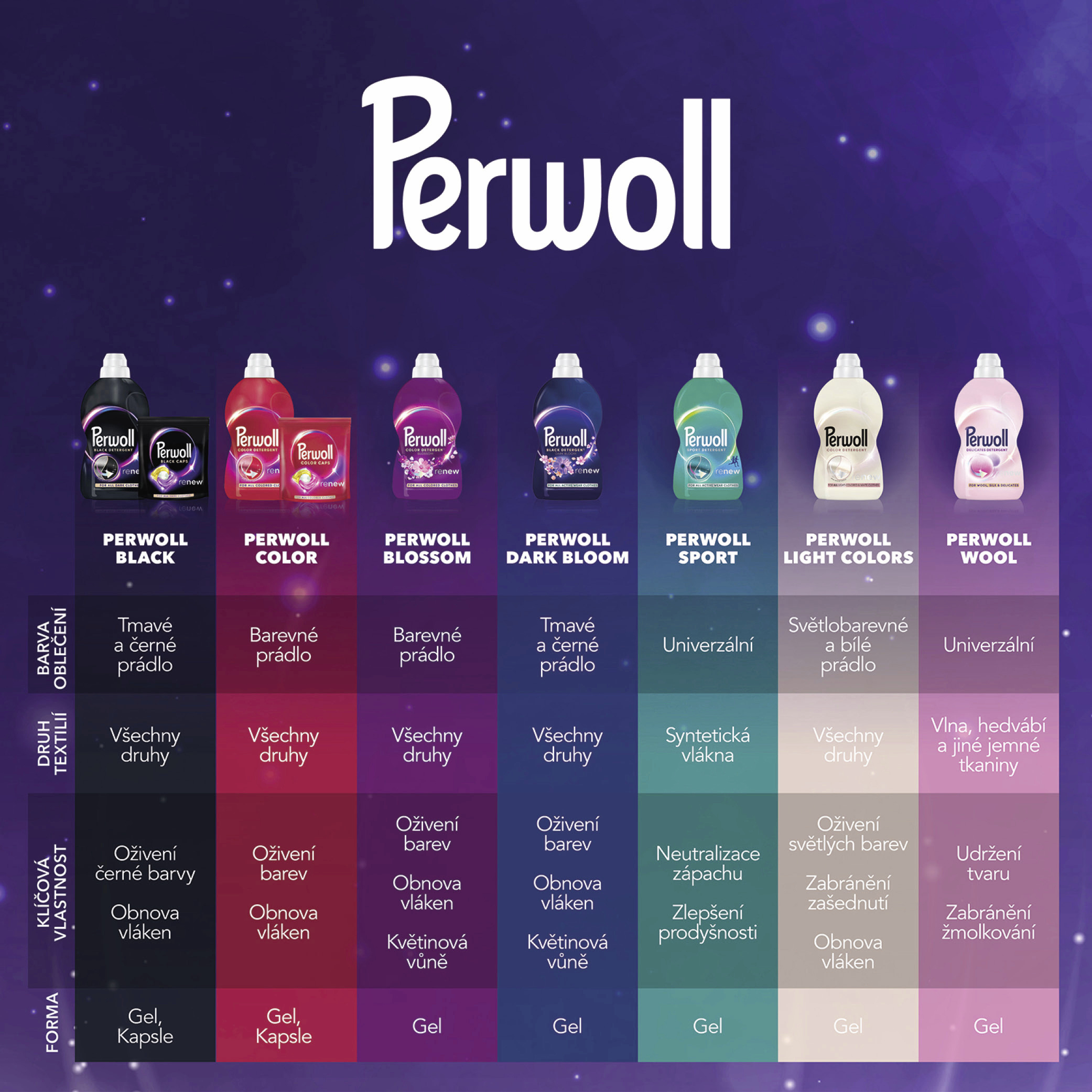 - Péče o barvy: Perwoll Color je ideálním tekutým pracím prostředkem pro barevné oblečení — poskytuje nejen šetrné praní, ale také oživuje barvy!