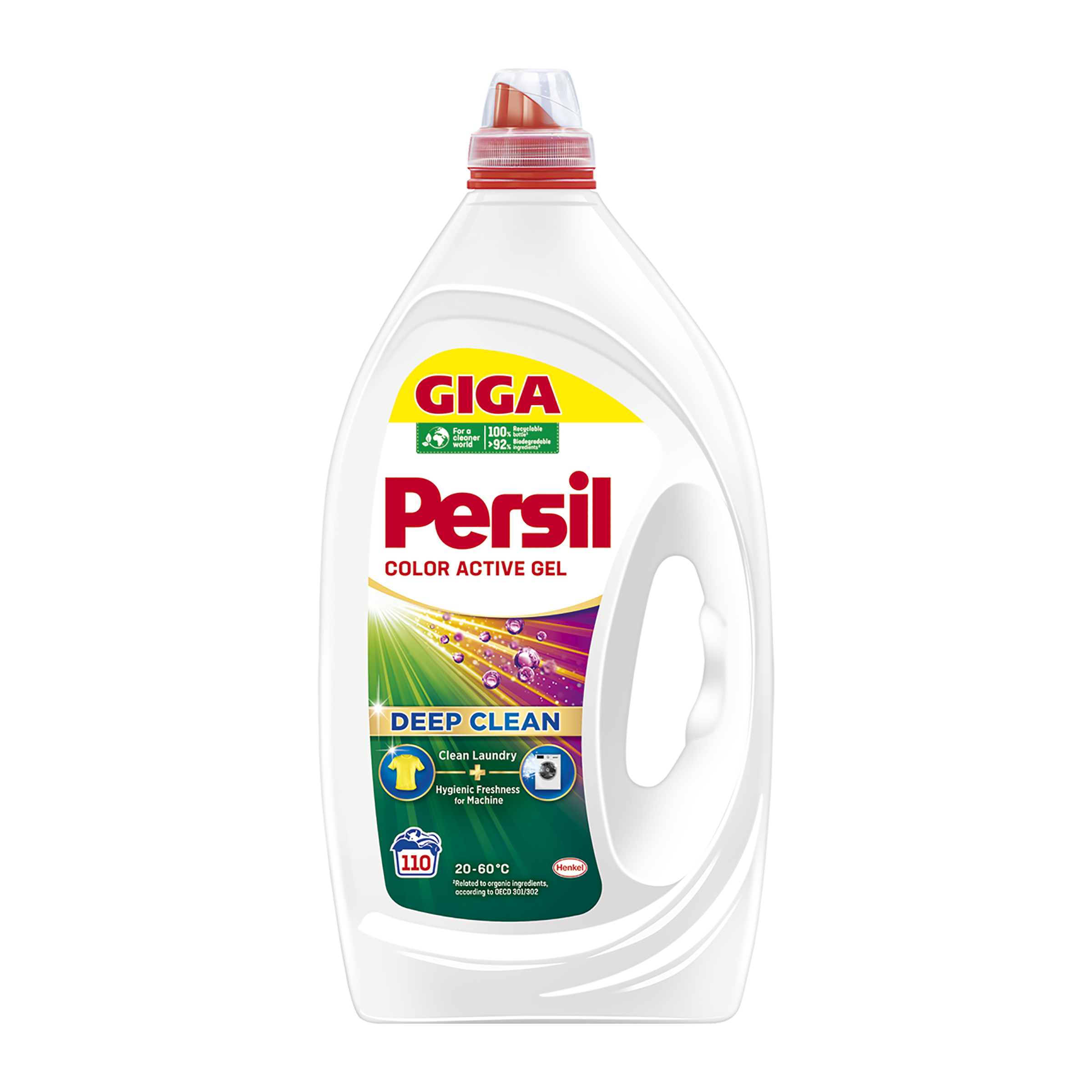 Persil prací gel Color Active - užijte si dokonale čisté prádlo a zářivost barev vašeho oblečení při každém praní. Gel na barevné prádlo pomáhá zachovat jas barev a zároveň poskytuje úžasný čisticí výkon a dodává pračce hygienickou svěžest díky novému složení. Naše složení v tomto gelu pro barevné prádlo je navrženo tak, aby udrželo barvy zářivé a poradilo si i s těmi nejodolnějšími skvrnami. Prací prostředek, který je odolný vůči skvrnám, dokáže být šetrný vůči barvám.