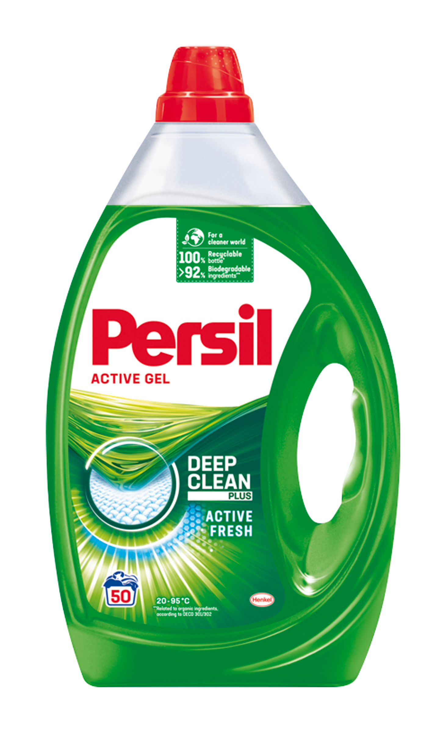 Persil Active Regular Gel - Prací gel pro perfektní výsledek i při nízkých teplotách Persil Active Gel je prací prostředek, který zajistí dokonalou a hygienickou čistotu vašeho prádla. Odstraňuje i ty nejodolnější skvrny a zároveň je šetrný k oblečení. Díky technologii Deep Clean Plus, efektivně odstraňuje i odolné skvrny tím, že proniká hluboko do textilních vláken. Pomocí Active Fresh efektu udržuje v oblečení dlouhotrvající svěží vůni čerstvě vypraného prádla. Navíc pečuje o textilní vlákna, zabraňuje tvorbě žmolků a udržuje bílé prádlo zářivé. Chrání nejen oblečení, ale i planetu. Složení pracího gelu obsahuje 92 %* biologicky rozložitelných složek a je efektivní i při praní již od 20°C, což nám napomáhá šetřit energii. Pro čistější svět prací gel přichází ve 100% recyklovatelném obalu. Persil už více než 100 let vyrábí vysoce kvalitní prací prostředky, díky kterým barvy neblednou a bílé oblečení září. Naše oddanost řemeslu z nás udělala značku, kterou si lidé spojují s kvalitními výrobky a spolehlivými výsledky. Chceme i nadále vítězit nad odolnými skvrnami - a zároveň se chovat šetrně k naší planetě. Výhody produktu: - Perfektní čistota i při nízkých teplotách (20 - 95°C) - Účinné odstranění skvrn - Dlouhotrvající svěžest - 92 % biologicky rozložitelných složek* - 100% recyklovatelný obal *Týká se organických složek, podle OECD 301/302.