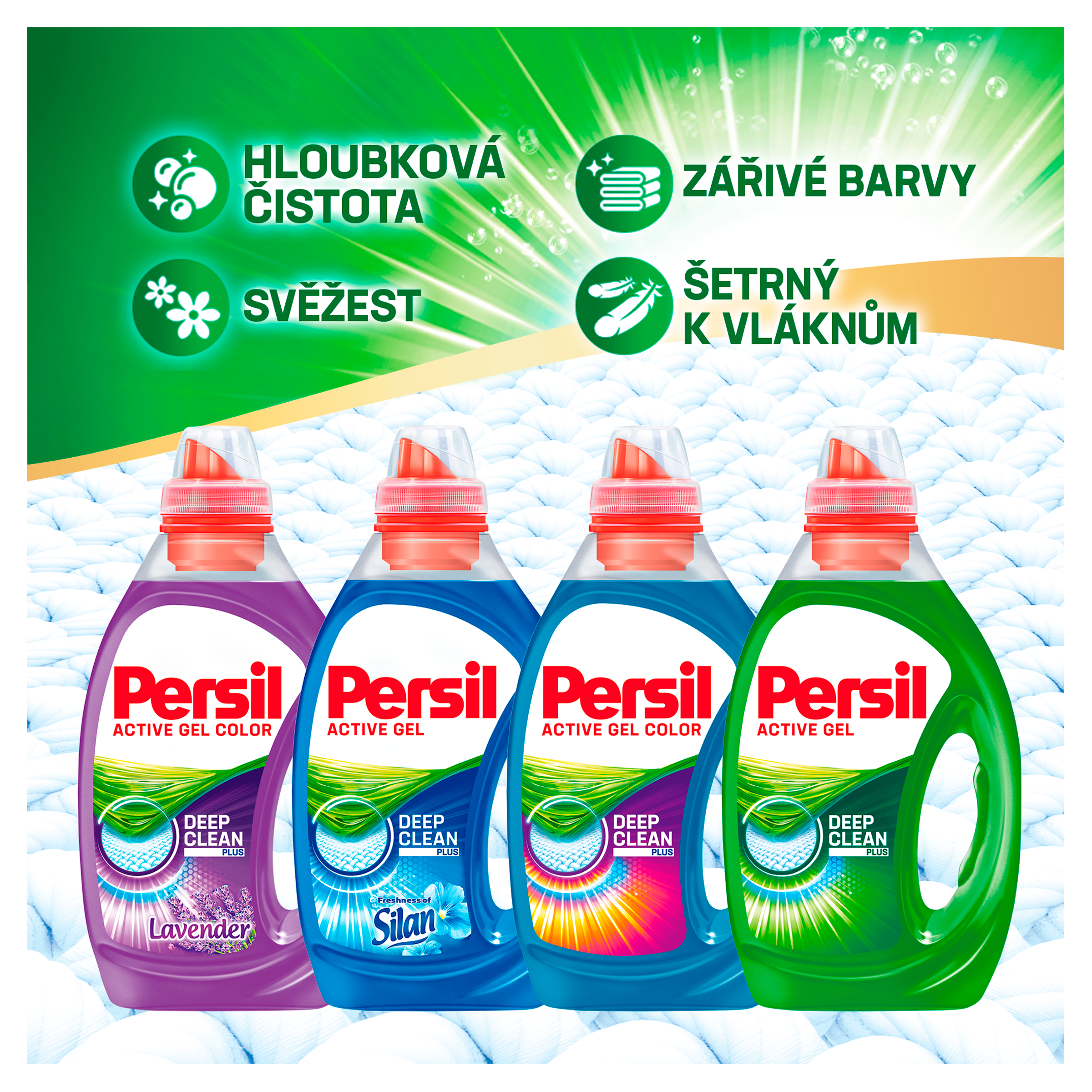 Prací gel na barevné prádlo s vůní levandule Persil prací gel na barevné prádlo s Deep Clean technologií obsahuje unikátní kombinaci aktivních látek, které pronikají hluboko do vláken, kde odstraňují i ty nejodolnější skvrny a zároveň jsou šetrné k oblečení. Pro perfektní výsledek, jemnou péči o textilní vlákna a zářivé barvy. Dopřejte svému oblečení dokonalou čistotu a dlouhotrvající svěží vůni levandule, kterou si zamilujete.