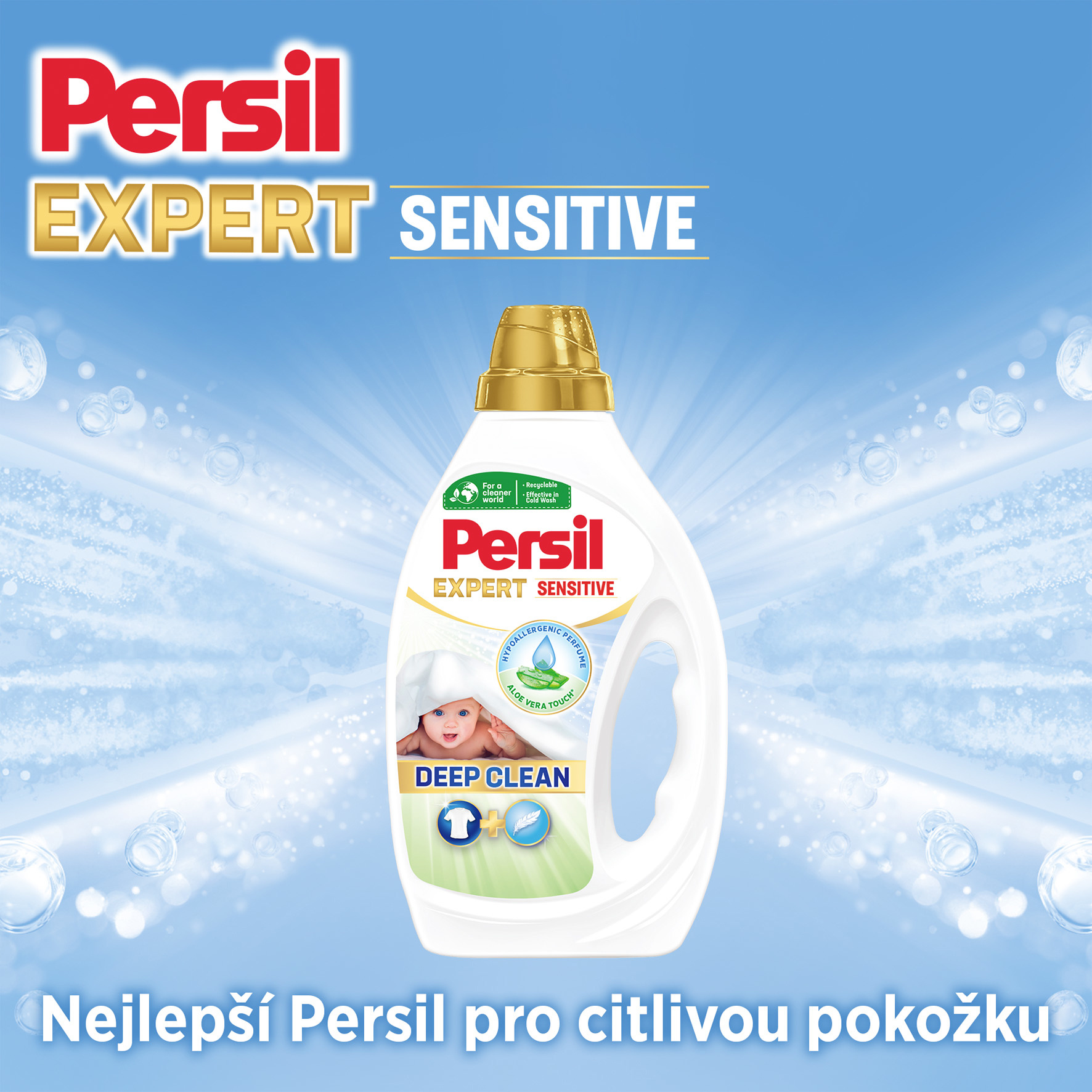 Pro čistější svět: Persil prací prostředek je navržen pro odstranění odolných skvrn a nyní je vyráběn ve 100% recyklovatelném obalu a navíc obsahuje 92 %* biologicky rozložitelných složek. Účinné při nízkých teplotách - praní ve studené vodě již od 20 °C, aby se šetřila energie při každém praní. Nyní i v budoucnu se Persil zavázal poskytovat skutečně hloubkové čištění prádla a přitom být šetrný k planetě. Šetřete energii díky silnému složení Persil Deep Clean, které přináší efektivní výsledky i při plné pračce a při nízkých teplotách.