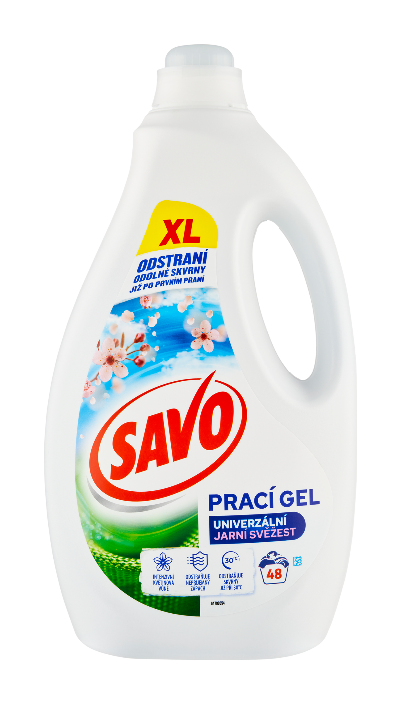 SAVO nový prací gel Jarní svěžest - odstraní skvrny již po prvním praní! Účinný i při rychlých cyklech a studené vodě. Tento výjimečný prací gel účinně odstraňuje skvrny i při krátkých pracích cyklech a ve studené vodě, pomůže vám tak ušetřit energii! Dlouhotrvající svěžest až po dobu 14 dní. Vaše prádlo bude vonět svěže až 14 dní po praní. Otestujte sami! Zachovává zářivé barvy oblečení. S naším pracím gelem si můžete být jisti, že vaše oblíbené kousky zůstanou krásně barevné a hned tak nevyblednou. Intenzivní květinová vůně. Každé praní bude jako vycházka květinovou zahradou. Užijte si svěžest a příjemnou vůni!