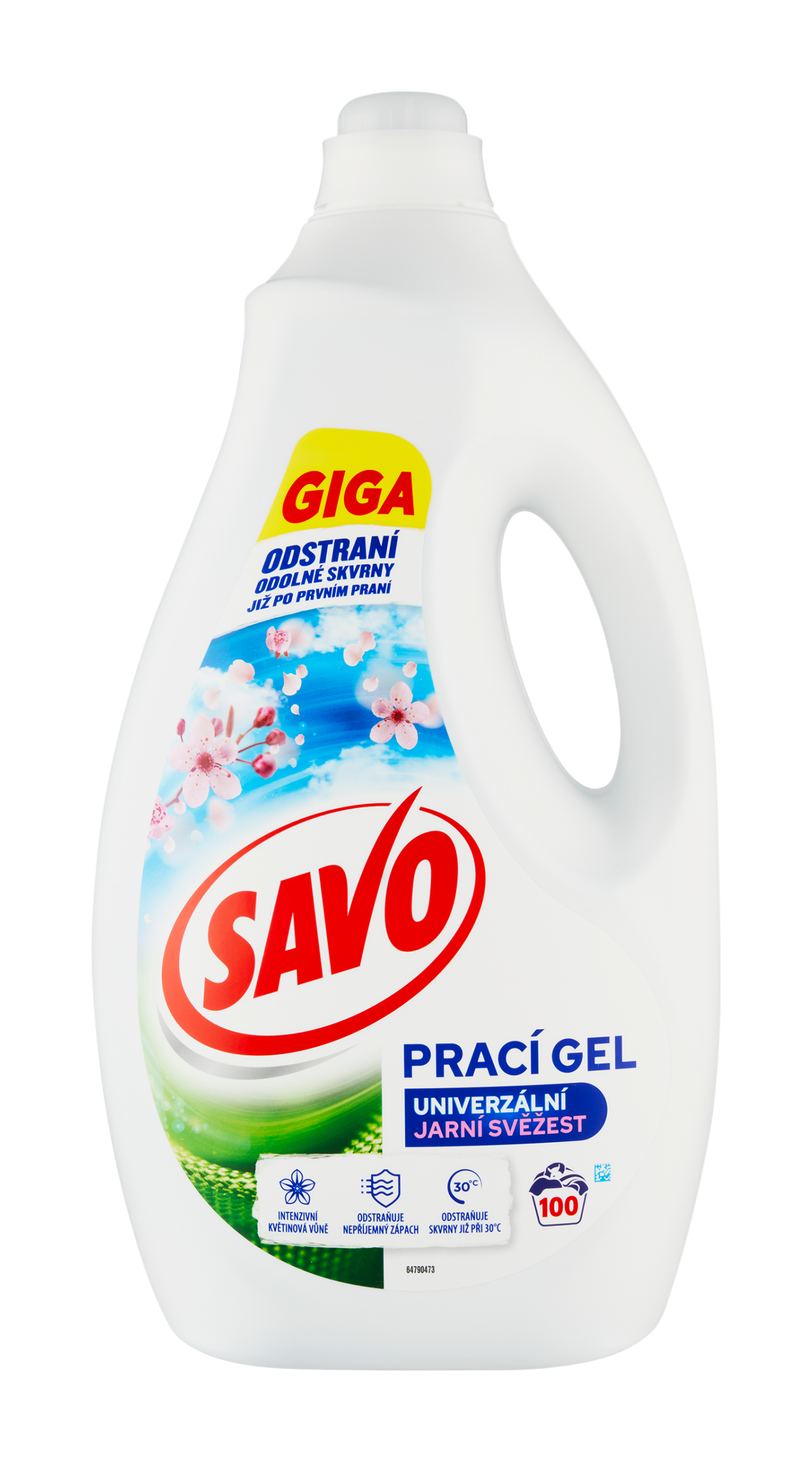 Nový prací gel Savo Jarní svěžest odstraní skvrny již po prvním praní a je účinný i při krátkých pracích cyklech a nízkých teplotách (30 °C), čímž pomáhá šetřit energii. Zanechává vaše prádlo svěží až 14 dní a díky speciálnímu složení chrání barvy před vyblednutím. Intenzivní květinová vůně promění každé praní v zážitek plný svěžesti. Navíc přichází ve výhodném GIGA balení s 100 pracími dávkami, které zajistí dlouhotrvající čistotu a svěžest vašeho prádla.