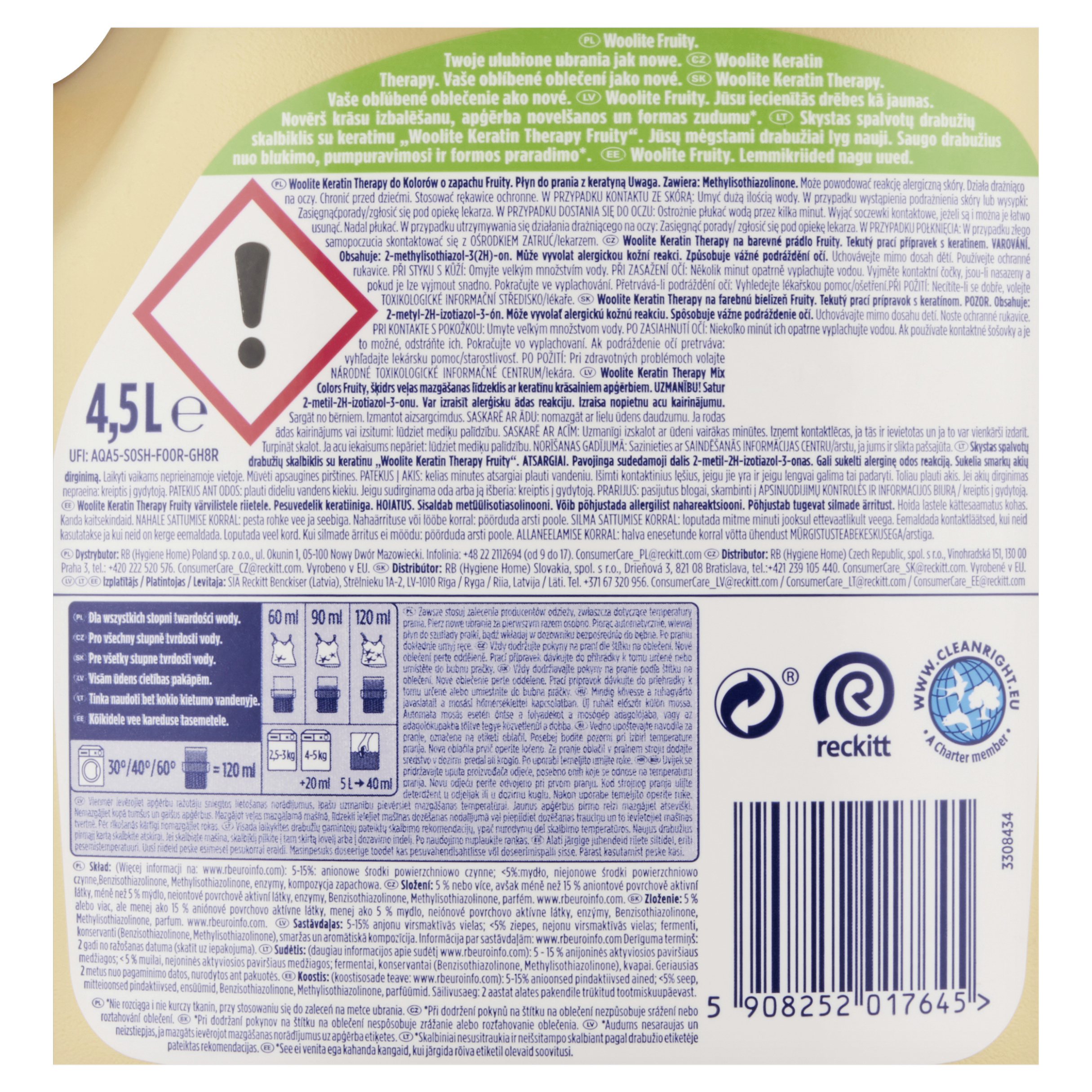 Woolite Keratin Therapy na barevné prádlo Fruity. Tekutý prací přípravek s keratinem. VAROVÁNÍ. Obsahuje: 2-methylisothiazol-3(2H)-on. Může vyvolat alergickou kožní reakci. Způsobuje vážné podráždění očí. Uchovávejte mimo dosah dětí. Používejte ochranné rukavice. PŘI STYKU S KŮŽÍ: Omyjte velkým množstvím vody. PŘI ZASAŽENÍ OČÍ: Několik minut opatrně vyplachujte vodou. Vyjměte kontaktní čočky, jsou-li nasazeny a pokud je lze vyjmout snadno. Pokračujte ve vyplachování. Přetrvává-li podráždění očí: Vyhledejte lékařskou pomoc/ošetření. PŘI POŽITÍ: Necítíte-li se dobře, volejte TOXIKOLOGICKÉ INFORMAČNÍ STŘEDISKO/lékaře.