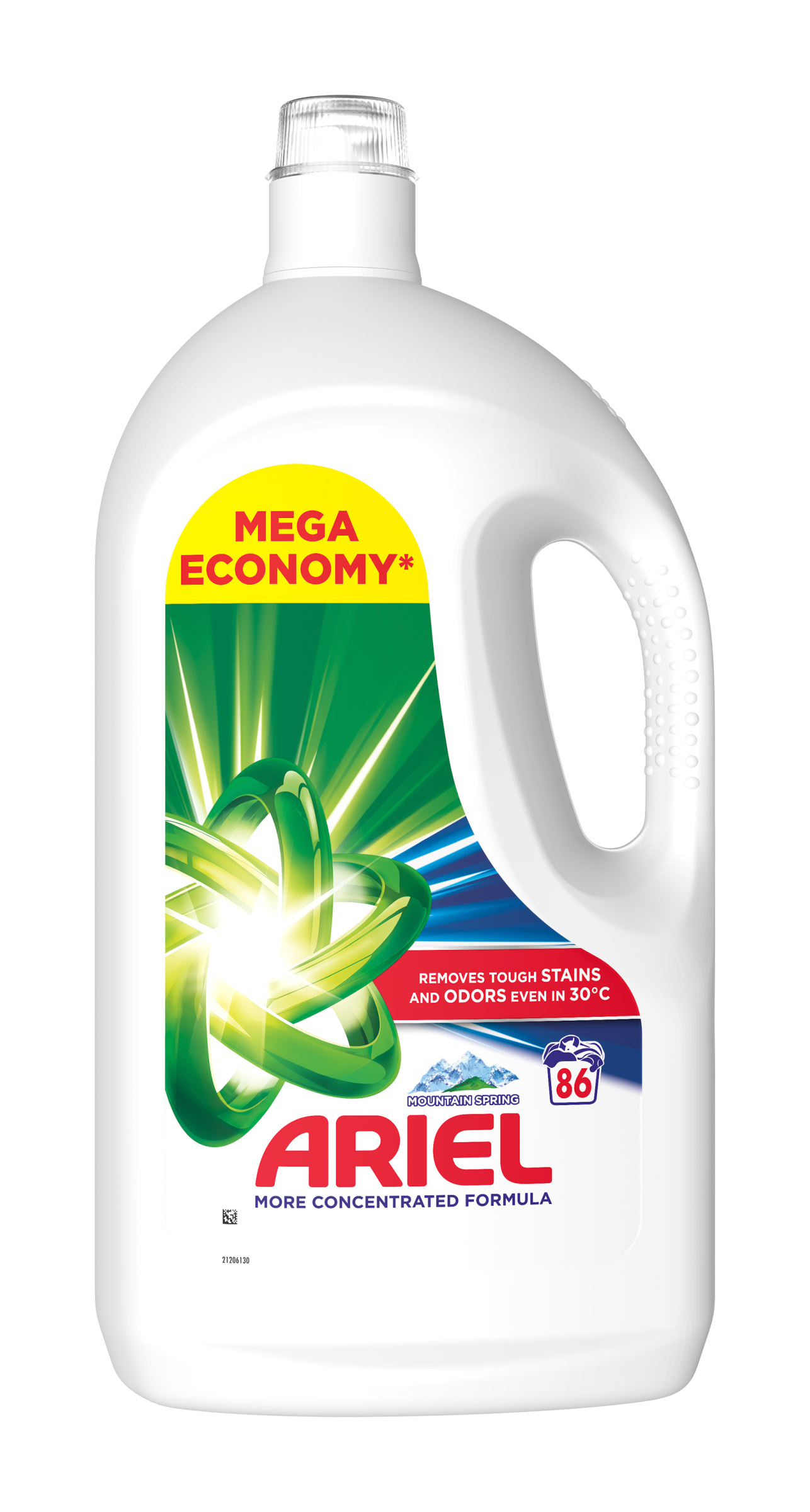 Ariel, značka doporučovaná výrobci Whirlpool, Beko, Candy a Electrolux, představuje tekutý prací prostředek Ariel Mountain Spring. Odstraňuje odolné skvrny a zápach dokonce i při 30 °C. Jeho složení bylo navrženo speciálně pro krátké praní na nízkou teplotu. Tekutý prací prostředek Ariel Mountain Spring můžete také nanést pomocí zelené odměrky přímo na skvrny, a až poté vložit prádlo do pračky. Aby byly výsledky praní co nejlepší, vložte odměrku naplněnou pracím prostředkem přímo do bubnu pračky. Z důvodu ochrany životního prostředí nemají odměrku všechny lahve.