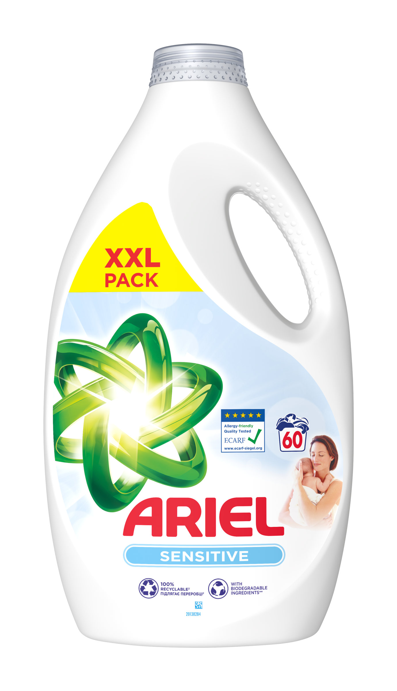• NEKOMPROMISNÍ KE SKVRNÁM, JEMNÝ K POKOŽCE: Složení je šetrné k citlivé pokožce a zároveň nekompromisní ke skvrnám, přesně jak od tekutého pracího prostředku Ariel očekáváte, a to i při nižší teplotě praní