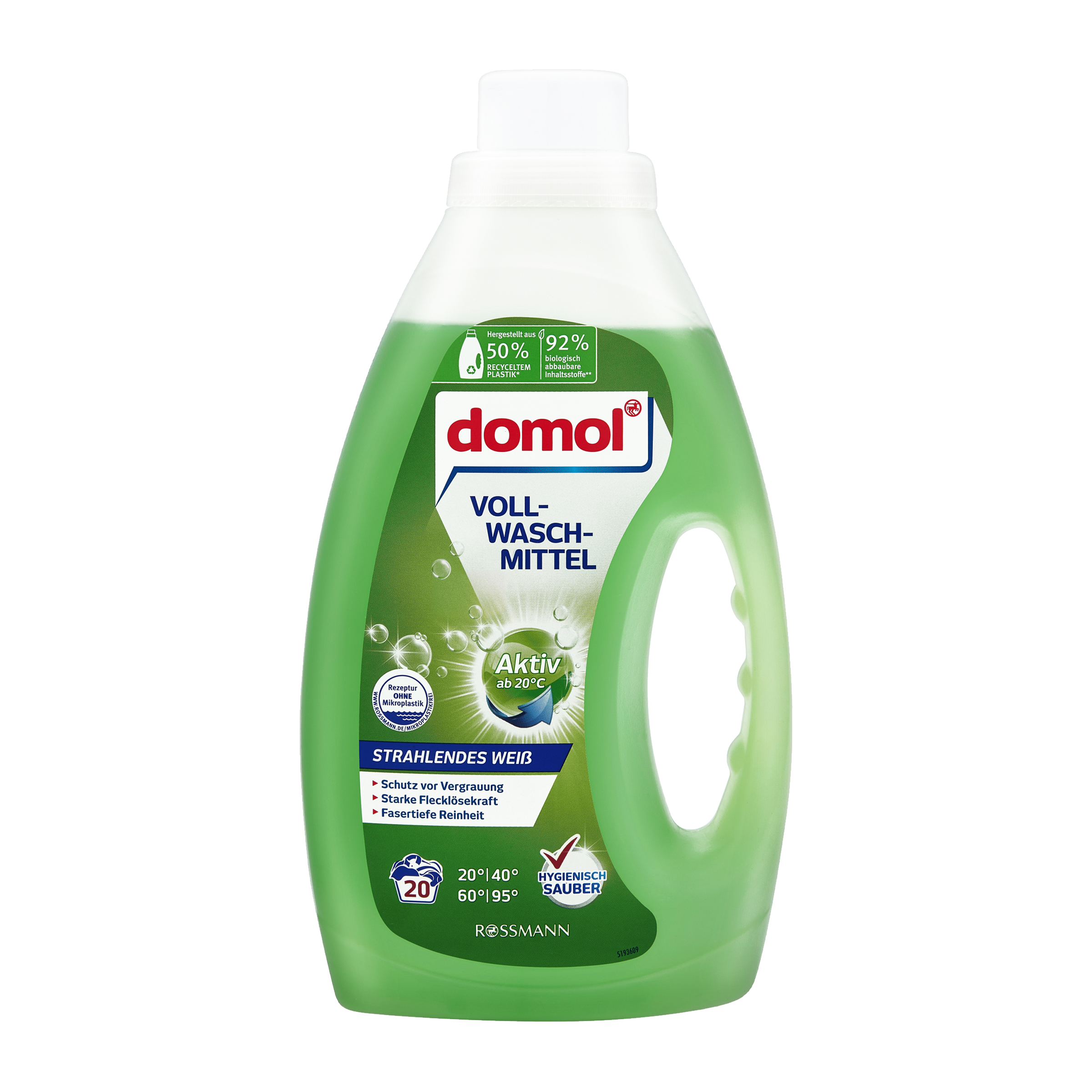 Není vhodný pro vlnu a hedvábí. V případě potřeby předem ošetřete odolné skvrny. Perte při nejnižší možné teplotě, aktivní již od 20 °C. Pro lehce zašpiněné prádlo zvolte krátký prací program a pro silně zašpiněné prádlo vyšší teploty (max. 60 °C). Dávkujte podle tvrdosti vody, stupně znečištění a náplně pračky (viz dávkovací tabulka) a dodržujte doporučené množství náplně výrobce spotřebiče. Dávkujte prací prostředek Domol na silné prádlo přes máchací komoru nebo přidejte přímo do prádla pomocí dávkovací kuličky. Tvrdost vody zjistíte u místních vodáren.