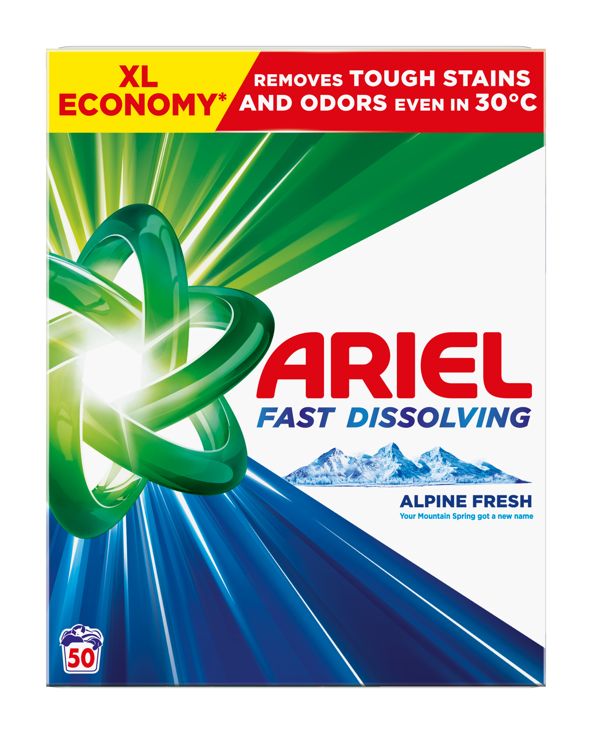 Prací prášek Ariel Alpine Fresh přináší silný prací výkon i při nízkých teplotách. Díky inovativní technologii se při kontaktu s vodou okamžitě aktivuje, efektivně proniká do hloubky vláken a důkladně odstraňuje skvrny i zápach. Osvěžující vůně Alpine Fresh dodává prádlu dlouhotrvající čistotu a svěžest. Prášek zároveň šetří látky, protože umožňuje účinné praní už při 30 °C. Prací cykly s nižší teplotou tak pomáhají zachovávat barvy i strukturu oblečení.