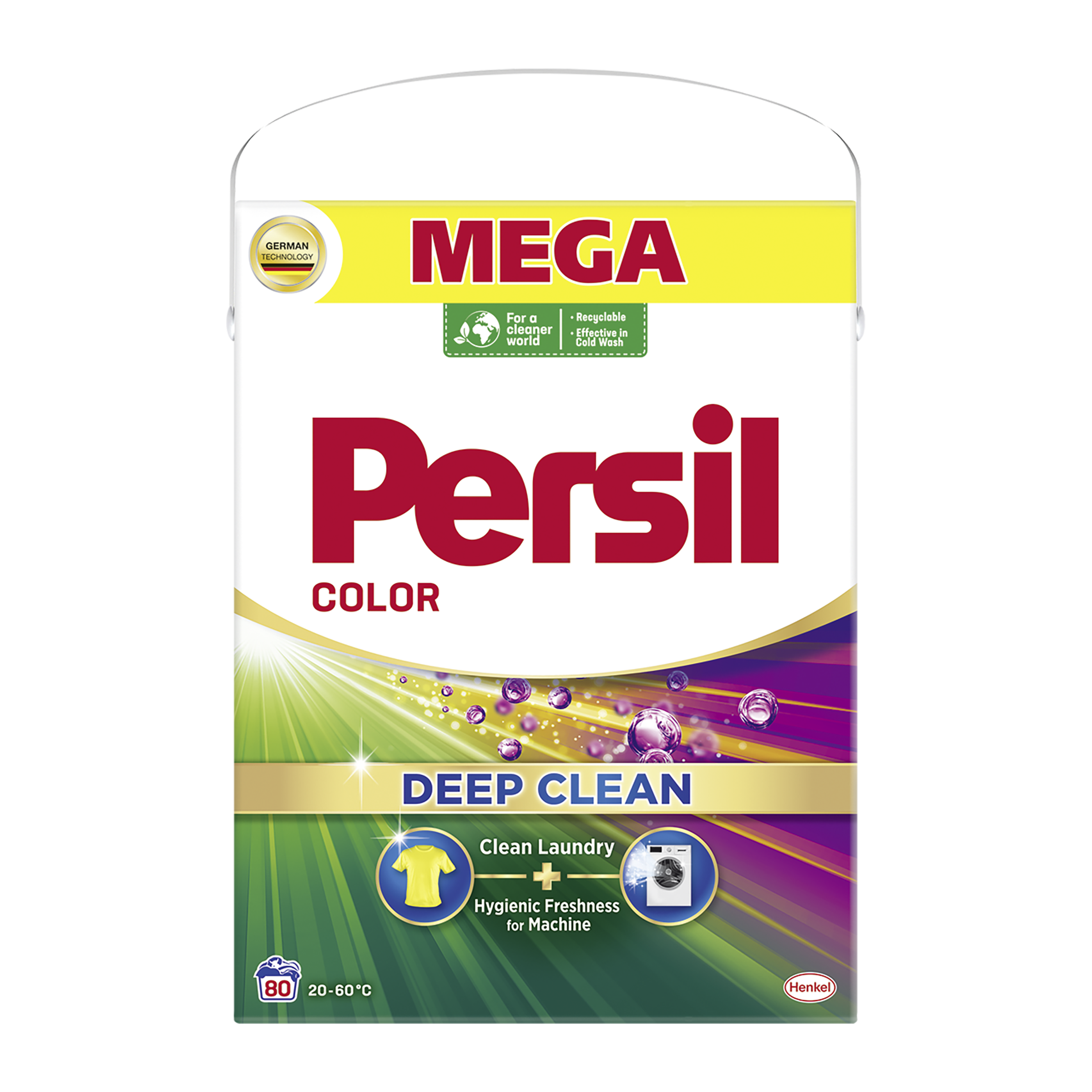Persil prací prášek Color - užijte si dokonale čisté prádlo a zářivost barev vašeho oblečení při každém praní. Prací prášek na barevné prádlo pomáhá zachovat jas barev a zároveň poskytuje úžasný čisticí výkon a dodává pračce hygienickou svěžest díky novému složení. Naše složení v tomto prášku pro barevné prádlo je navrženo tak, aby udrželo barvy zářivé a poradilo si i s těmi nejodolnějšími skvrnami. Prací prostředek, který je účinný vůči skvrnám, dokáže být šetrný vůči barvám. Koncentrovaný prací prostředek je navržený tak, aby zajistil více než jen svěží oblečení, působí ještě hlouběji v mechanismu pračky a účinně odstraňuje nepříjemné pachy. Pro čistější svět: Odolné vůči skvrnám, šetrné k planetě, složení obsahuje 92 % biologicky odbouratelných složek* a je vyráběno ve 100% recyklovatelném obalu. Účinné při nízkých teplotách - praní ve studené vodě začíná při 20 °C, aby se šetřila energie při každém praní. Nyní i v budoucnu se Persil zavázal poskytovat hloubkové čištění prádla a přitom být šetrný k planetě. Šetřete energii díky silnému složení Persil Deep Clean, které přináší efektivní výsledky i při plné pračce a při nízkých teplotách.