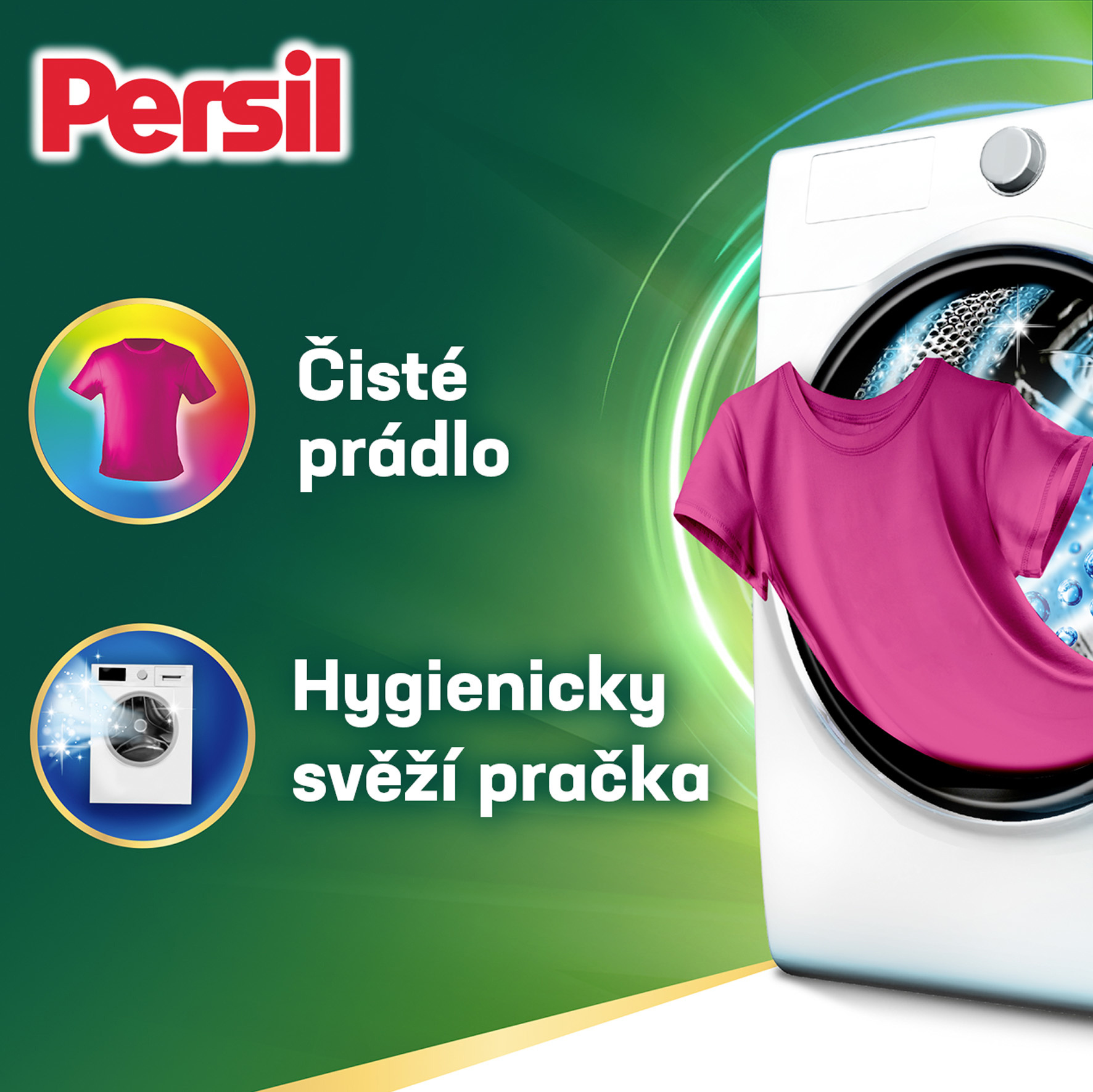 - Jedinečné složení: Prací prostředek Persil má jedinečné složení, které zajišťuje skutečné hloubkové čištění, které potřebujete: čisté, svěží a hygienické oblečení a hygienicky svěží pračku.