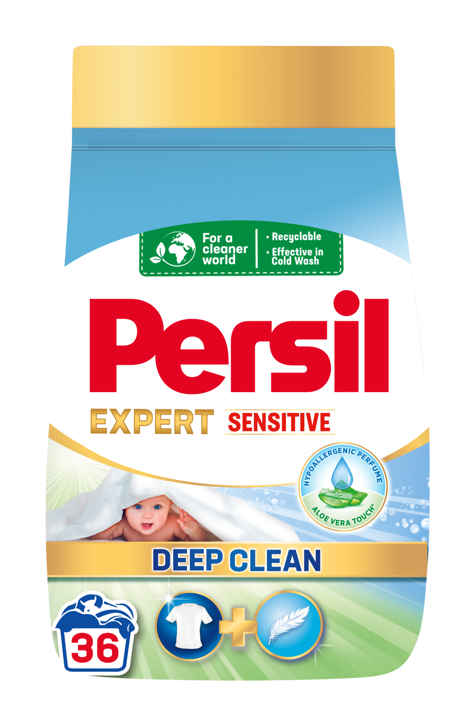 Prací prášek Persil Expert Sensitive Deep Clean nabízí zvýšenou péči a ochranu citlivé pokožky, díky čemuž je ideální volbou pro děti i alergiky. Dermatologicky testované složení¹ pracího prostředku pro citlivou pokožku s hypoalergenní parfemací je obohacené o zklidňující aloe vera a přírodní mýdlo, které šetrně pečují o pokožku.