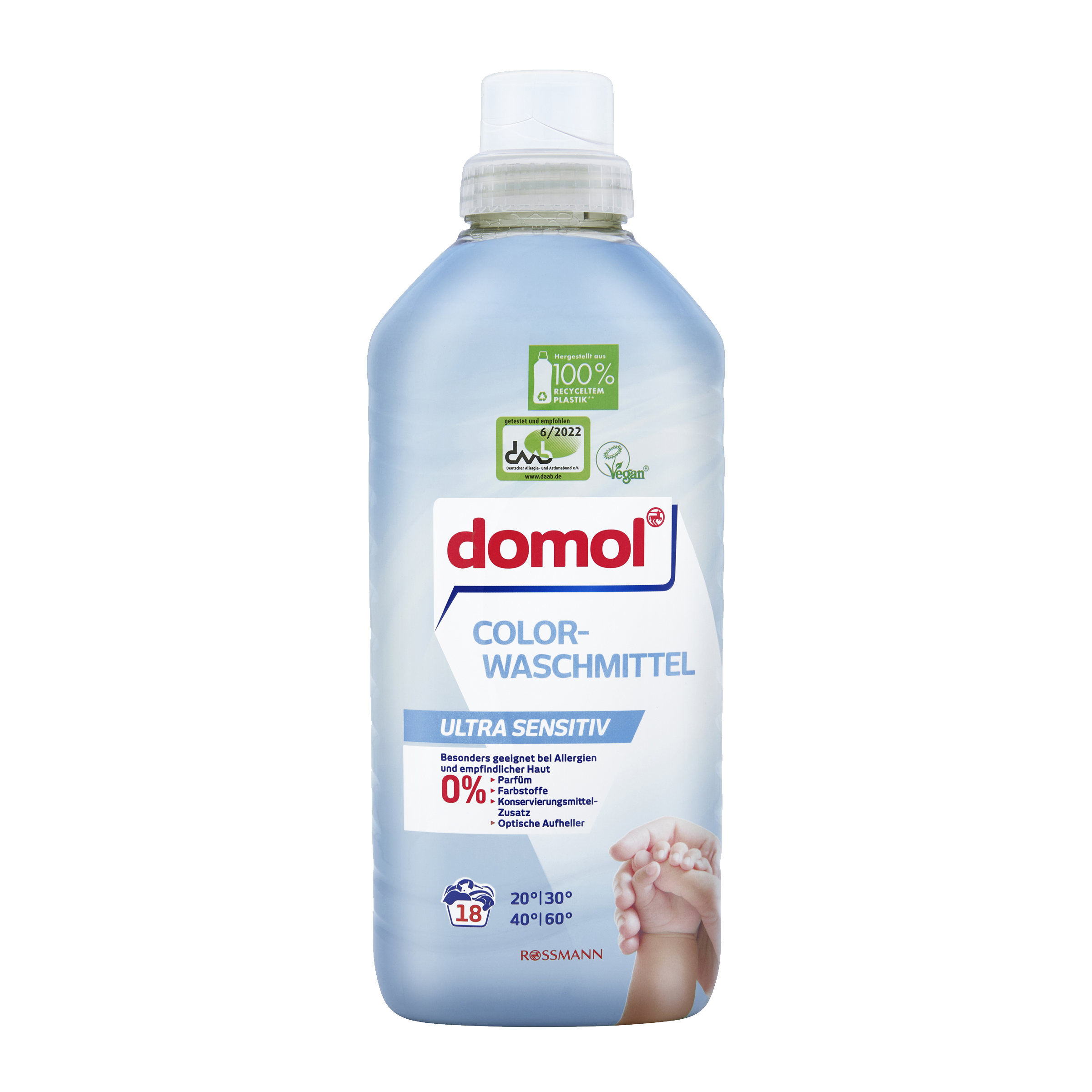 Užijte si svěží prádlo, které je šetrné k vaší citlivé pokožce – s pracím prostředkem domol Color Ultra Sensitive na barevné prádlo. Obzvláště vhodný pro alergiky a osoby s citlivou pokožkou.
