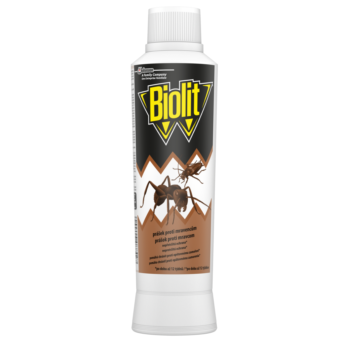 Opatření ke zmírnění rizika: Nepoužívejte tam, kde mohou být kontaminovány potraviny, krmiva nebo voda. Uchovávejte mimo dosah dětí. Neaplikujte v blízkosti zvířat a zamezte přístupu do ošetřených prostor. Před jídlem a po použití si důkladně umyjte ruce a odkrytá místa kůže. Uchovávejte na bezpečném místě. Před aplikací odstraňte nebo zakryjte terária, akvária a klece se zvířaty. Před aplikací zakryjte všechny nádrže na vodu. Neaplikujte přímo na zvířata. Další informace: Neužívejte na bytový textil. Při použití mějte vypnutý vzduchový filtr u akvária. Používejte pouze v dobře větraných prostorách. První pomoc: PŘI VDECHNUTÍ: Přeneste osobu na čerstvý vzduch. Při dýchacích potížích vyhledejte lékařskou pomoc. PŘI STYKU S KŮŽÍ: Omyjte velkým množstvím vody. Přetrvává-li podráždění, vyhledejte lékařskou pomoc. Je-li nutná lékařská pomoc, mějte po ruce obal nebo štítek výrobku. PŘI POŽITÍ: Necítíte-li se dobře, volejte TOXIKOLOGICKÉ INFORMAČNÍ STŘEDISKO/lékaře. PŘI ZASAŽENÍ OČÍ: Několik minut opatrně vyplachujte vodou. Vyjměte kontaktní čočky, jsou-li nasazeny a pokud je lze vyjmout snadno. Pokračujte ve vyplachování. Tel. číslo pro naléhavé situace: TIS, Klinika pracovního lékařství VFN a 1. LF UK, Na Bojišti 1, 120 00 Praha 2, tel.: 224 919 293 a 224 915 402. Mimořádná opatření na ochranu životního prostředí: Zabraňte úniku do životního prostředí (půdy, povrchové a podzemní vody) a kanalizace. Kontrola úniků: Zabraňte vniknutí přípravku do kanalizace, vodních toků a vodních těles. Pokud k takové situaci dojde, informujte příslušné úřady. Osobní ochranná opatření: Zabraňte tvorbě prachu. Ochrana životního prostředí: Odstraňte zbytky z místa úniku. Likvidace: EWC: 20 01 19* Pesticidy. Přípravek: Nevyhazujte odpad/obsah do kanalizace. Nekontaminujte vodní toky nebo vodní tělesa přípravkem nebo použitými obaly. Kontaminované obaly: Prázdné obaly znovu nepoužívejte. Biolit® prášek proti mravencům. Varování Účinná látka: deltamethrin (CAS: 52918-63-5) 0,05% (0,5g/kg). Vysoce toxický pro vodní organismy, s dlouhodobými účinky. Uniklý produkt seberte bukt seberte. Držitel povolení: SC Johnson Europe Sàrl , Z.A. La Pièce 8, 1180 Rolle, Švýcarsko. Číslo povolení: CZ-0010996-0000.