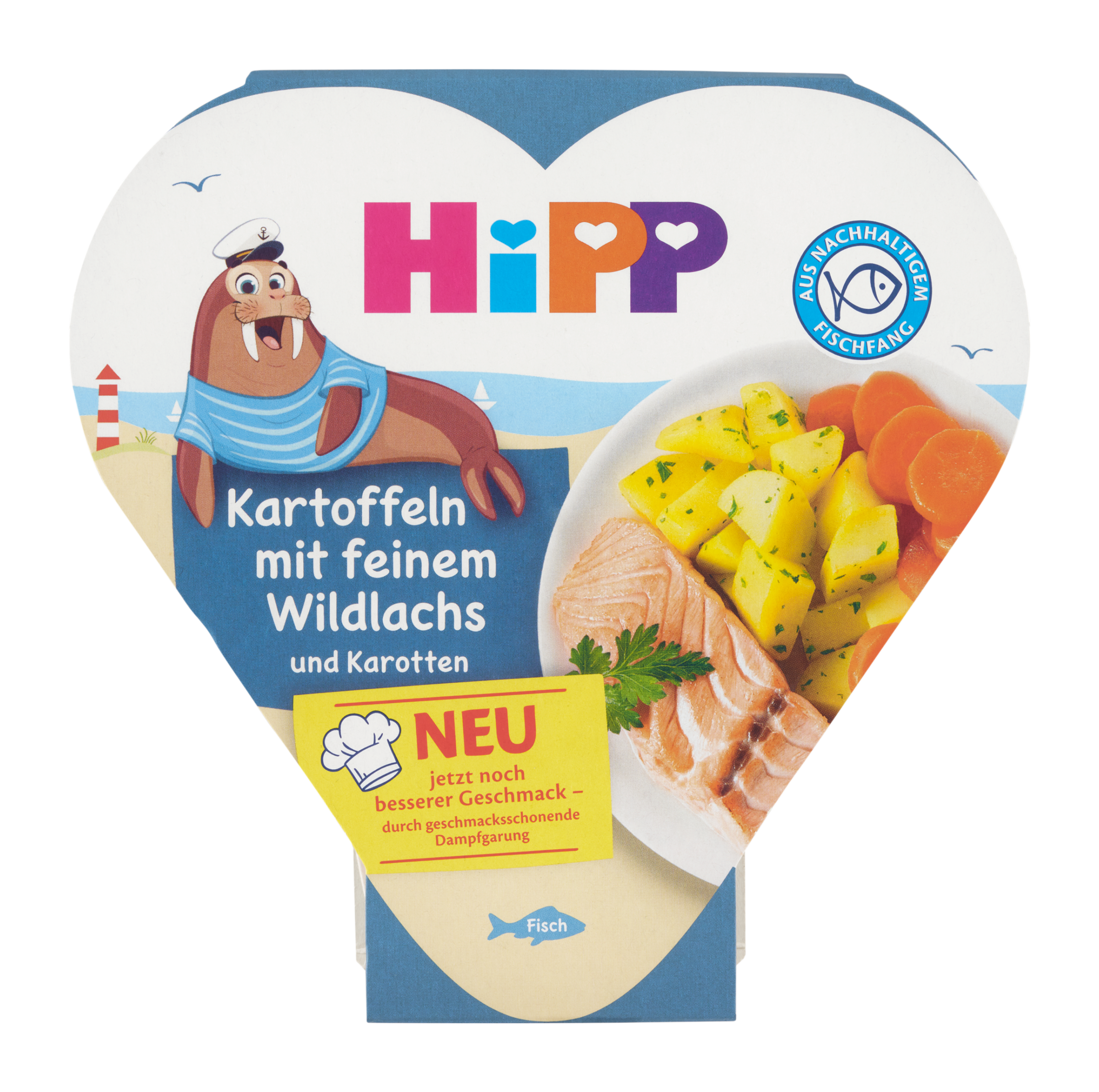 S dětskými hotovými pokrmy HiPP v praktických plastových srdíčkách nabízíte svým malým fajnšmekrům zdravá a rozmanitá jídla. Nově plastová srdíčka rozšiřujeme o HiPP Brambory se zeleninou a jemným lososem. Pokrm je připravovaný tak, aby dokonale uspokojil nutriční potřeby malých dětí. Mimořádně praktická je nerozbitná dětská plastová miska. Jídlo v ní lze snadno a rychle ohřát v horké vodní lázni nebo v mikrovlnné troubě.