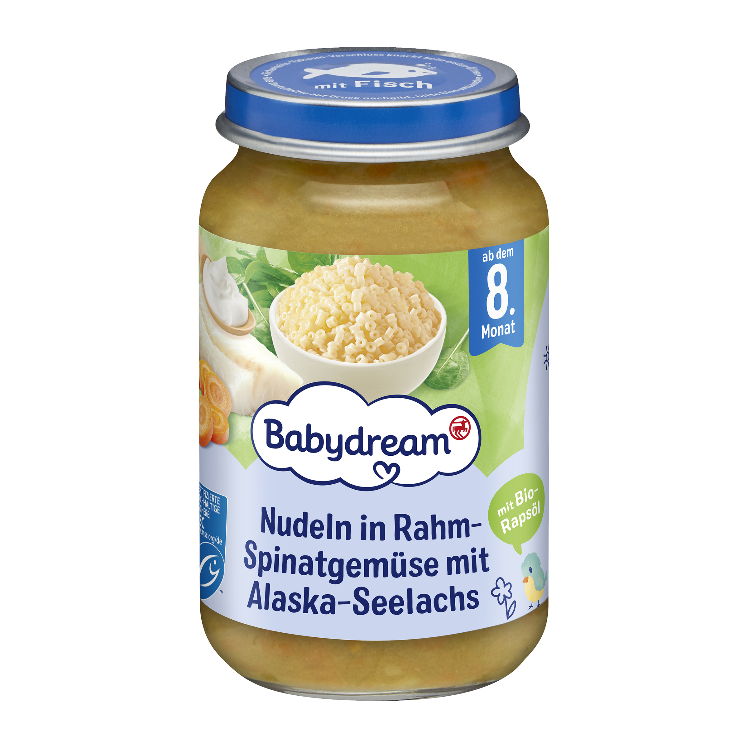 Masozeleninové příkrmy Babydream zasytí i ty největší jedlíky. Jsou vyrobeny z kvalitních surovin a jejich receptura a množství odpovídá vývojové fázi dítěte. Ze široké nabídky různých kombinací dobrot si určitě vyberete. Jaký bude ten nejoblíbenější? Zeleninovomasový příkrm s nudlemi a aljašskou treskou pro malé děti – od 8. měsíce věku dítěte. Sterilováno.