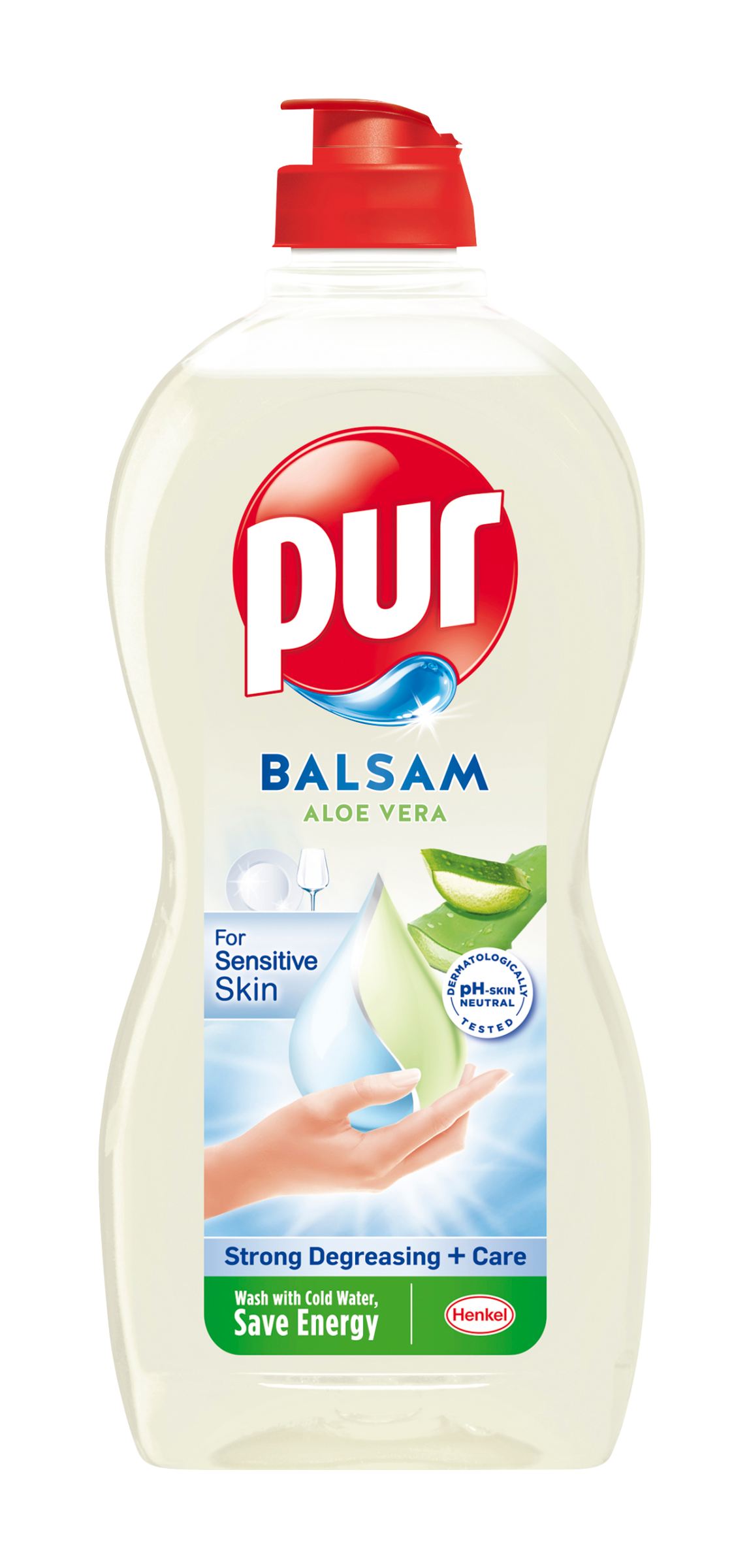 Pur Balsam Aloe Vera - Účinná odmašťovací síla + šetrnost k pokožce! Gel na mytí nádobí Pur Balsam Aloe Vera odstraňuje mastnotu a zaschlé zbytky jídla - pro zářivě čisté nádobí při každém mytí. Oplachujte ho studenou vodou a ušetřete energii. Láhev od mycího prostředku na nádobí je po použití plně recyklovatelná. Výhody produktu: - Odstraňuje připálenou mastnotu - pH neutrální složení - Dermatologicky testováno na snášenlivost s pokožkou - Láhev je po použití recyklovatelná Dermatologicky testováno.