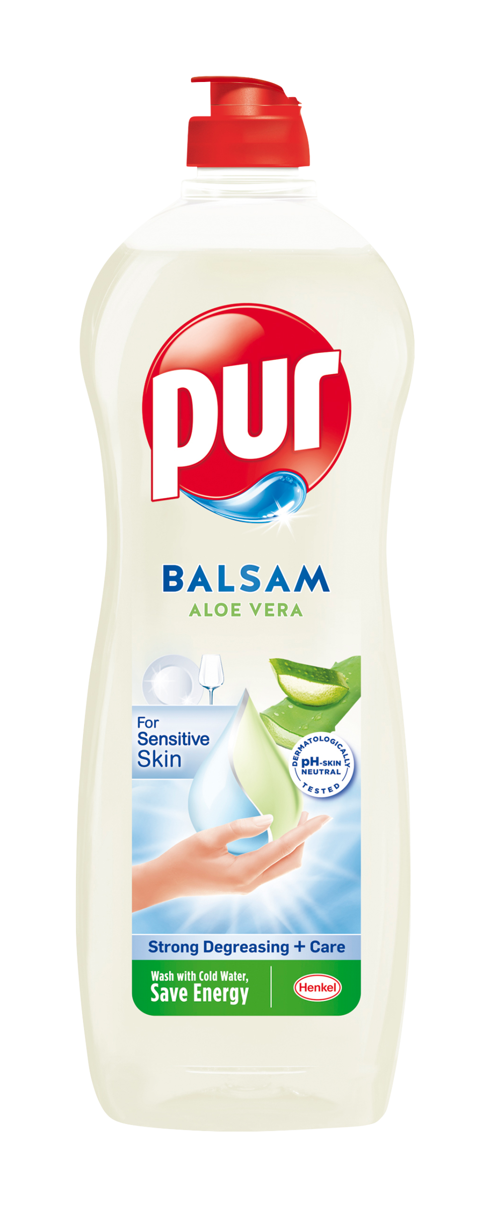 Pur Balsam Aloe Vera - Účinná odmašťovací síla + šetrnost k pokožce! Gel na mytí nádobí Pur Balsam Aloe Vera odstraňuje mastnotu a zaschlé zbytky jídla - pro zářivě čisté nádobí při každém mytí. Oplachujte ho studenou vodou a ušetřete energii. Láhev od mycího prostředku na nádobí je po použití plně recyklovatelná. Výhody produktu: - Odstraňuje připálenou mastnotu - pH neutrální složení - Dermatologicky testováno na snášenlivost s pokožkou - Láhev je po použití recyklovatelná Dermatologicky testováno.