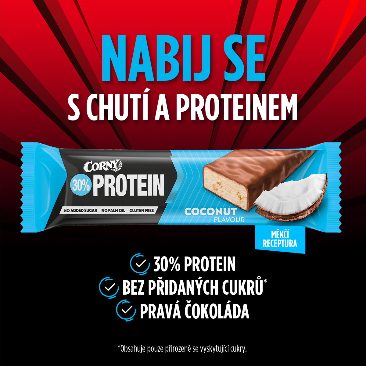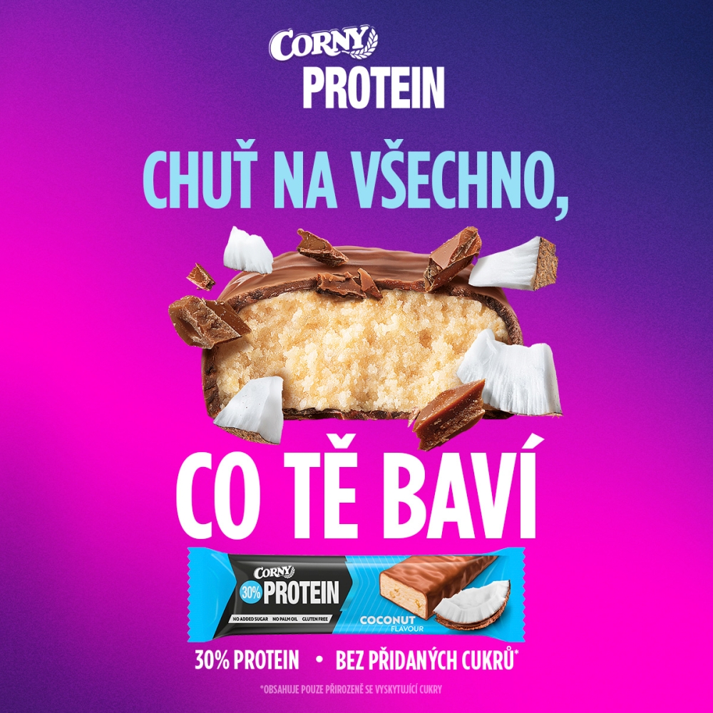 Vynikající chuť a řada funkčních benefitů, jako je 30 % proteinu, vláknina nebo pravá čokoláda s nízkým obsahem cukru, dělají z proteinových tyčinek Corny ideální společníky pro vaše sportovní aktivity. Nebo si ji vychutnejte jako lahodnou svačinku. www.corny.cz