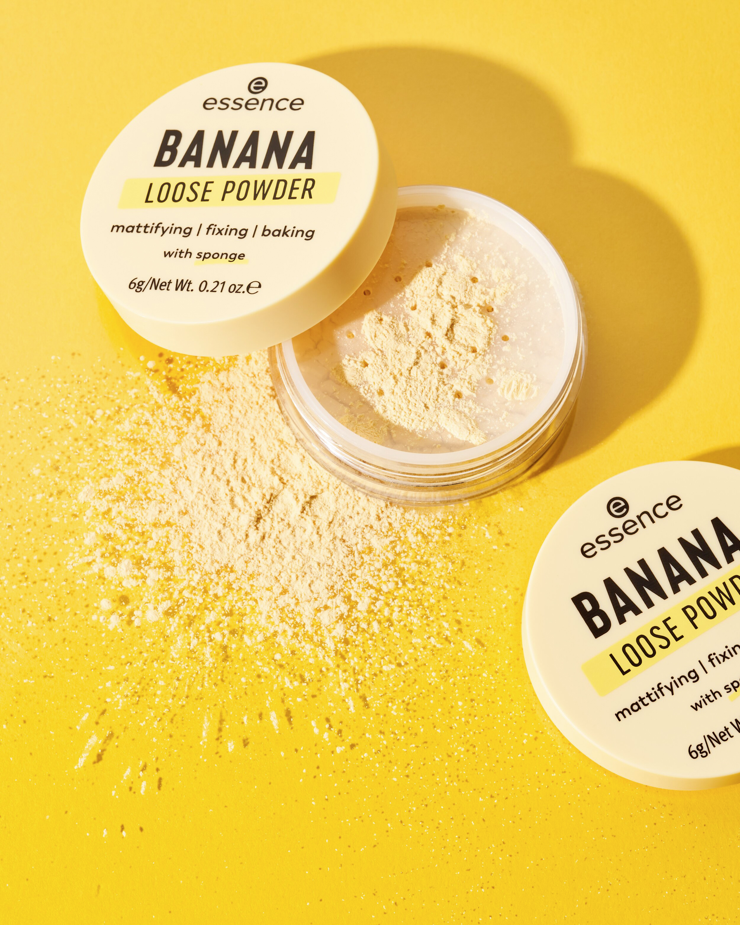 SYPKÝ PUDR BANANA: ultra jemný pudr v jemném žlutém odstínu je ideální pro vytvoření matného rozjasnění nad lícními kostmi, na čele, hraně nosu nebo nad horním rtem. Je také vhodný pro fixaci make-upu a pro techniku Concealer Baking. Lehká textura je vytvořena bez minerálního oleje a mastku – pro příjemně lehký pocit na pokožce. Sypký pudr je i s houbičkou, takže můžete kdykoliv osvěžit svůj vzhled.