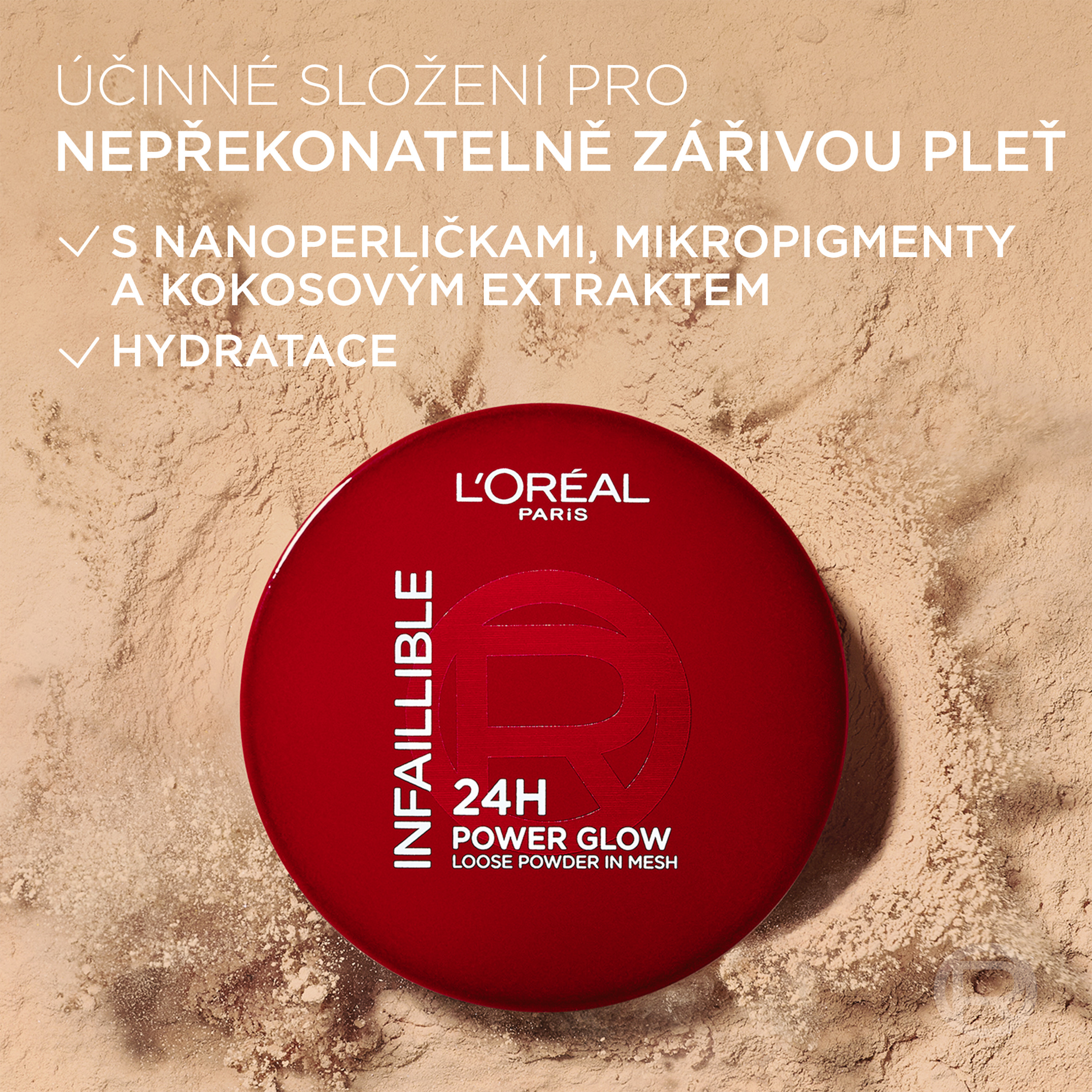 Objevte rozjasňující sypký pudr L’Oréal Paris Infaillible 24H Power Glow, který pleti dodá jemné vyhlazení a zářivý vzhled. Lehká textura s aplikátorem se síťkou umožňuje snadné a praktické dávkování ideálního množství produktu pro rovnoměrnou aplikaci bez zatížení.