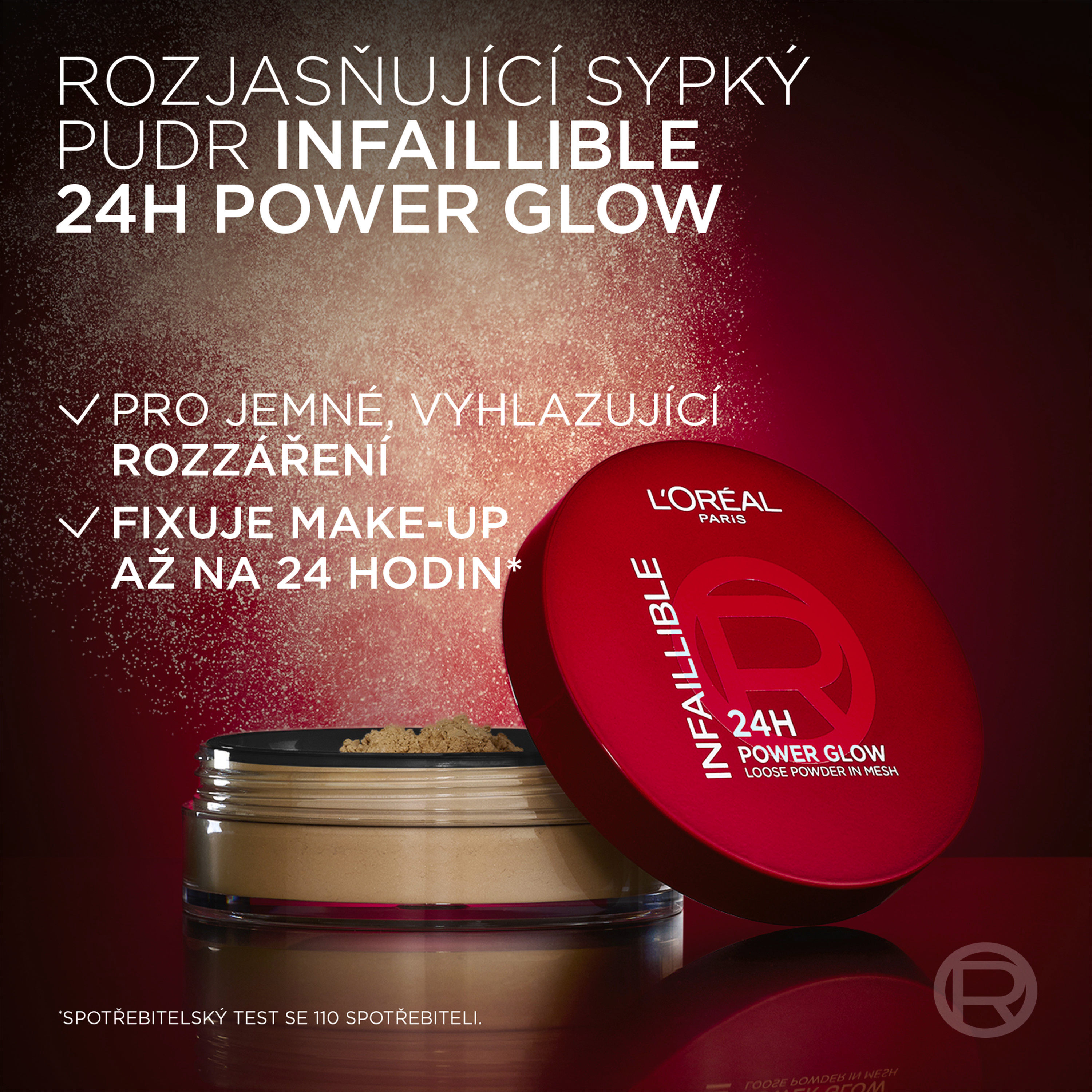 Objevte rozjasňující sypký pudr L’Oréal Paris Infaillible 24H Power Glow Loose Powder Medium, který pleti dodá dokonalé vyhlazení a nekonečné rozzáření. Jemná textura se přirozeně přizpůsobí pleti a pomáhá vytvořit hladký, sjednocený vzhled bez pocitu zatížení.