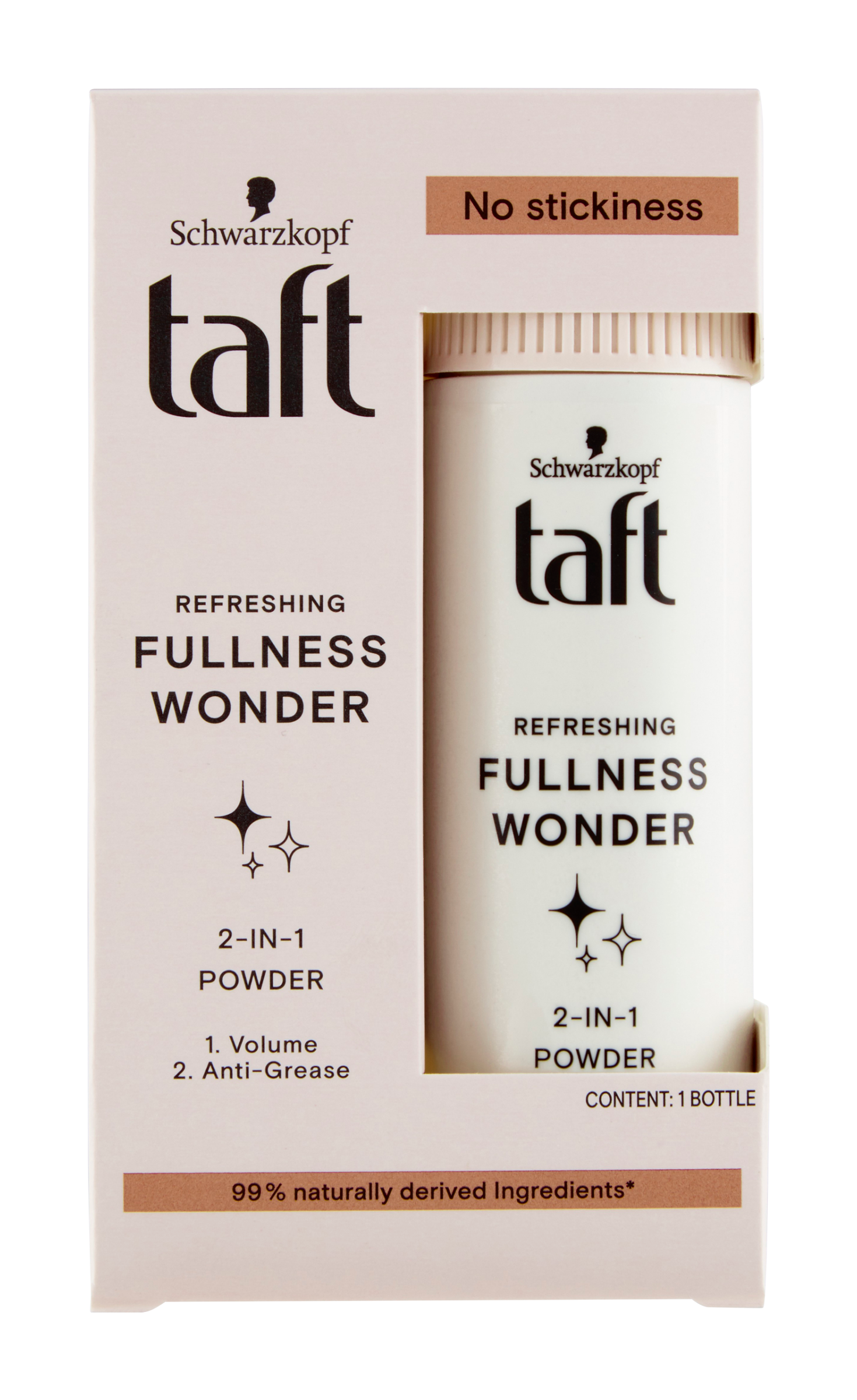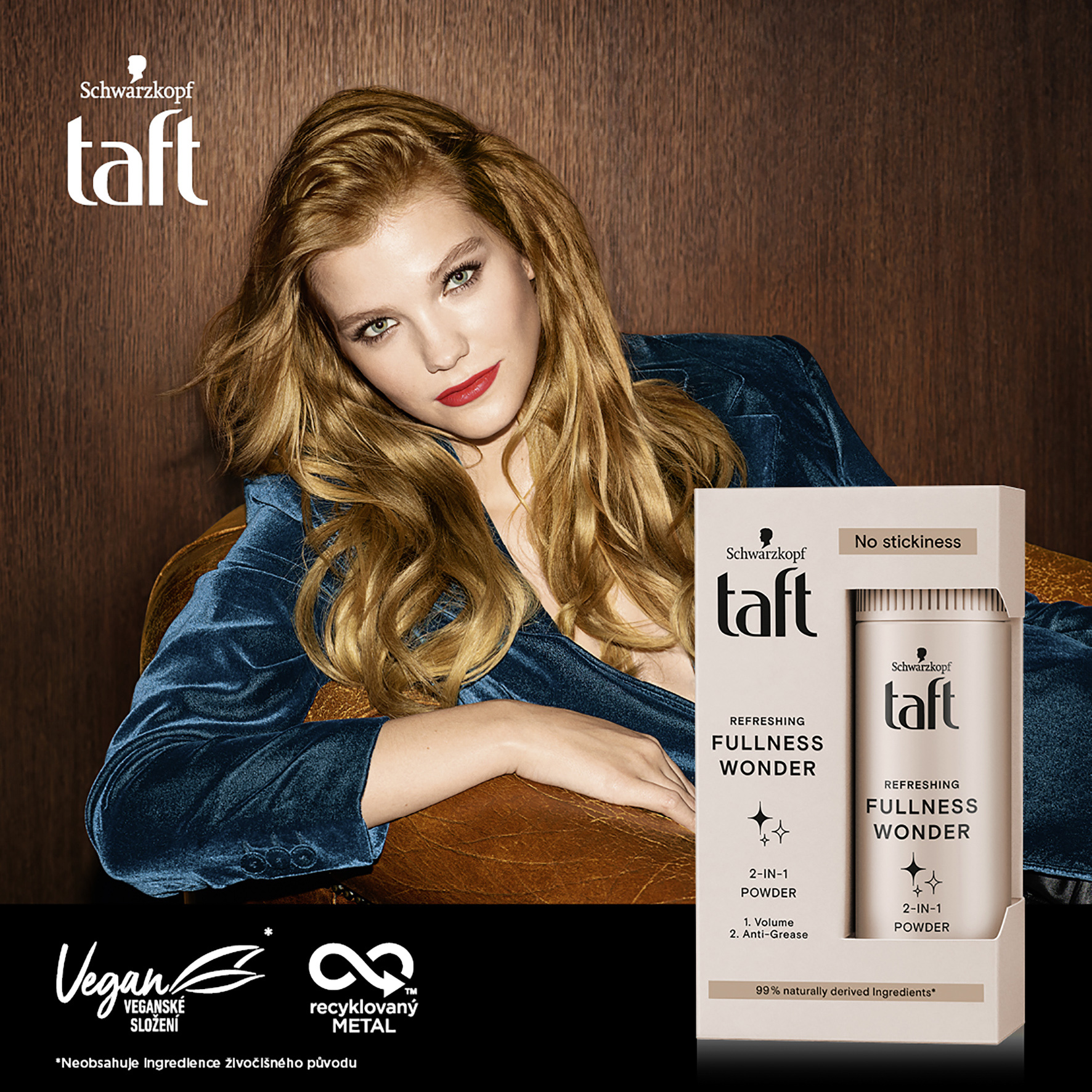 Taft Wonders: Protože život je příliš krátký na to, aby vaše vlasy měly špatný den. Taft Fullness Wonder pudr pro extra objem & okamžitou svěžest. Bez pocitu slepených vlasů. Vlasy nezatěžuje. Proti pocitu suchých vlasů
