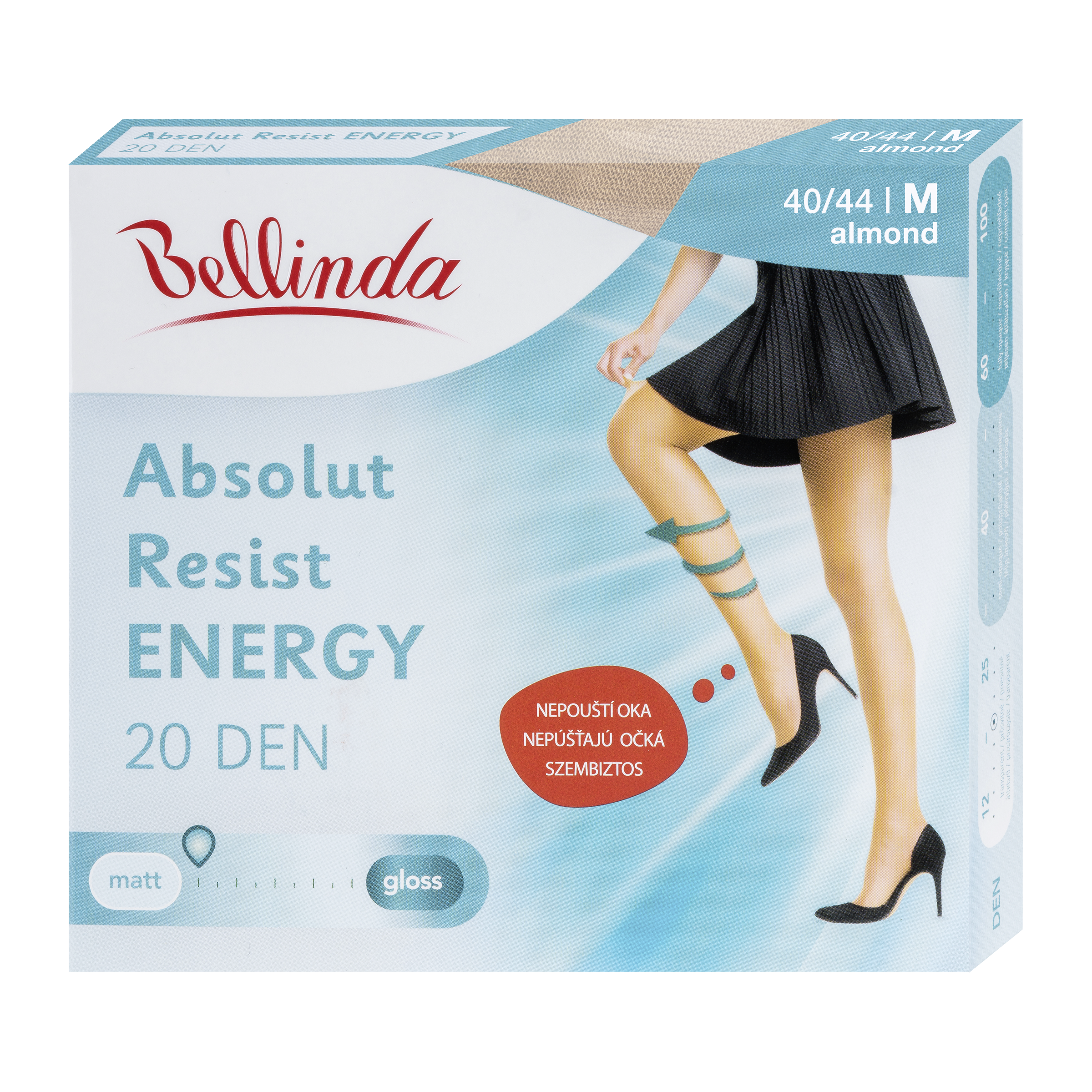 Punčochové kalhoty s extra širokým lemem v pase, mají zesílený sed a klínek. Jsou vyrobeny ze speciálního vlákna, které zabraňuje utíkání ok. Odstupňovaný tlak podporuje krevní oběh (nenahrazují lékařské kompresní punčochové kalhoty), lehký podpůrný efekt (Stupeň podpory: 5-7 mmHg) pro pocit lehkých nohou.