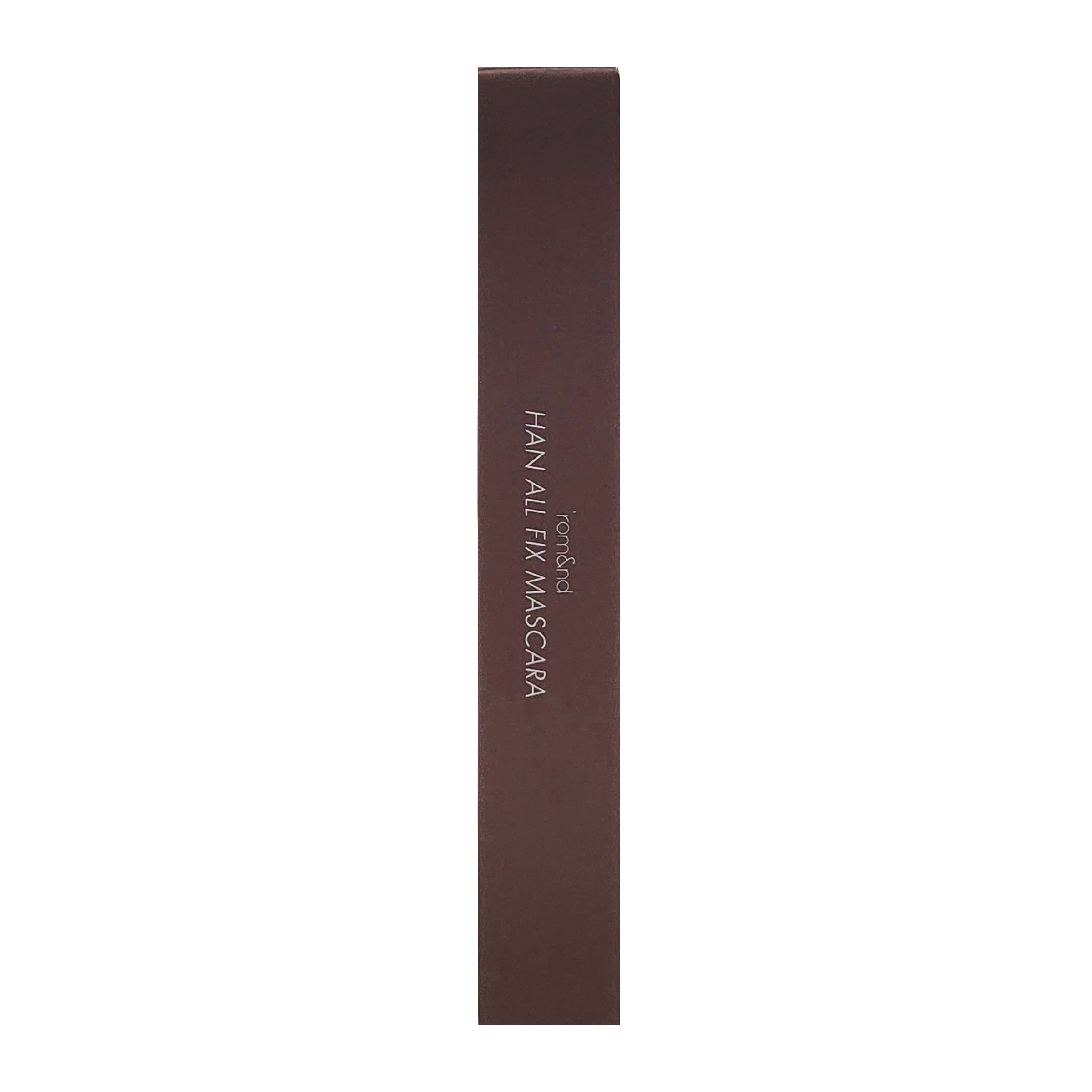 Rom&nd - Han All Fix Mascara - řasenka v hnědém odstínu. Má voděodolnou konzistenci, zajišťuje dlouhotrvající efekt, nezanechává hrudky a během dne se nerozmazává. Zahnutý kartáček prodlužuje a natáčí řasy. Díky specifické barvě poskytuje přirozený efekt.