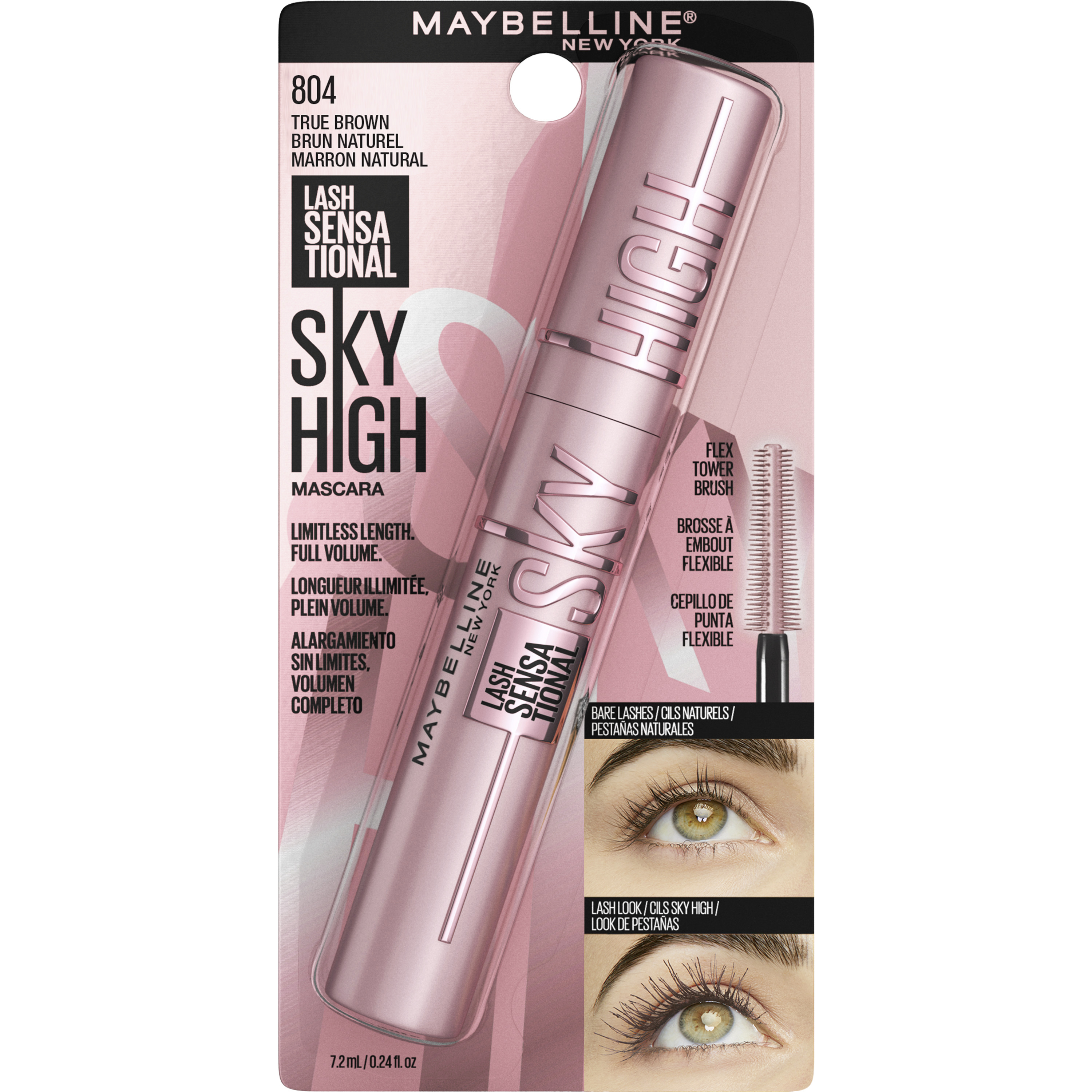 Řasy až do nebe nyní jemně hnědé. Ikonická řasenka Lash Sensational Sky High od Maybelline New York nyní dodá vašim řasám výrazný, jemně hnědý objem a neomezenou délku z každého úhlu. Úzký, flexibilní kartáček řasenky Sky High Brown navíc zachytí každou řasu a prodlouží ji tak od kořínku až ke konečku.
