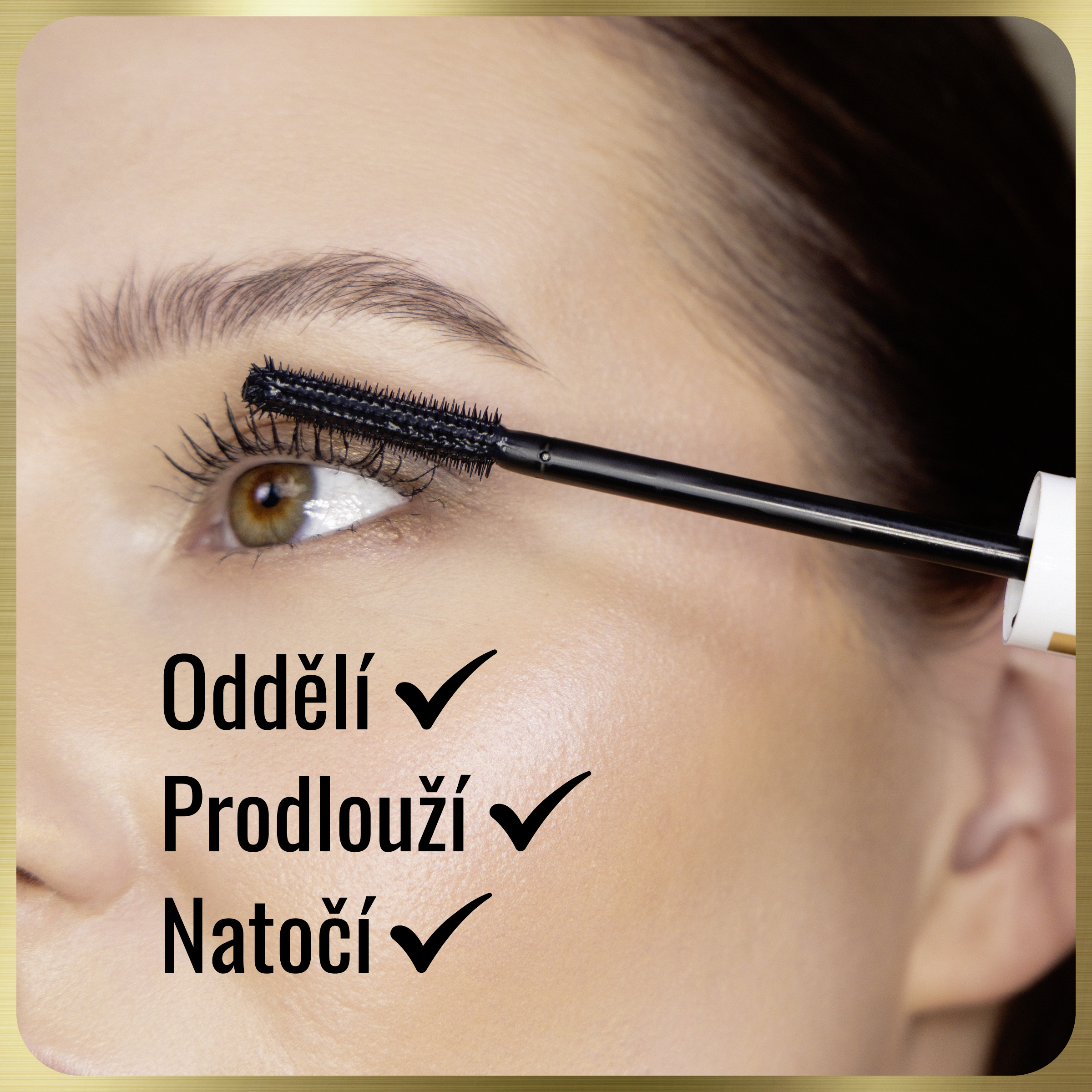 Kartáček přiložte k řasám a táhněte od kořínků ke konečkům. Opakujte, dokud nedosáhnete požadovaného výsledku.