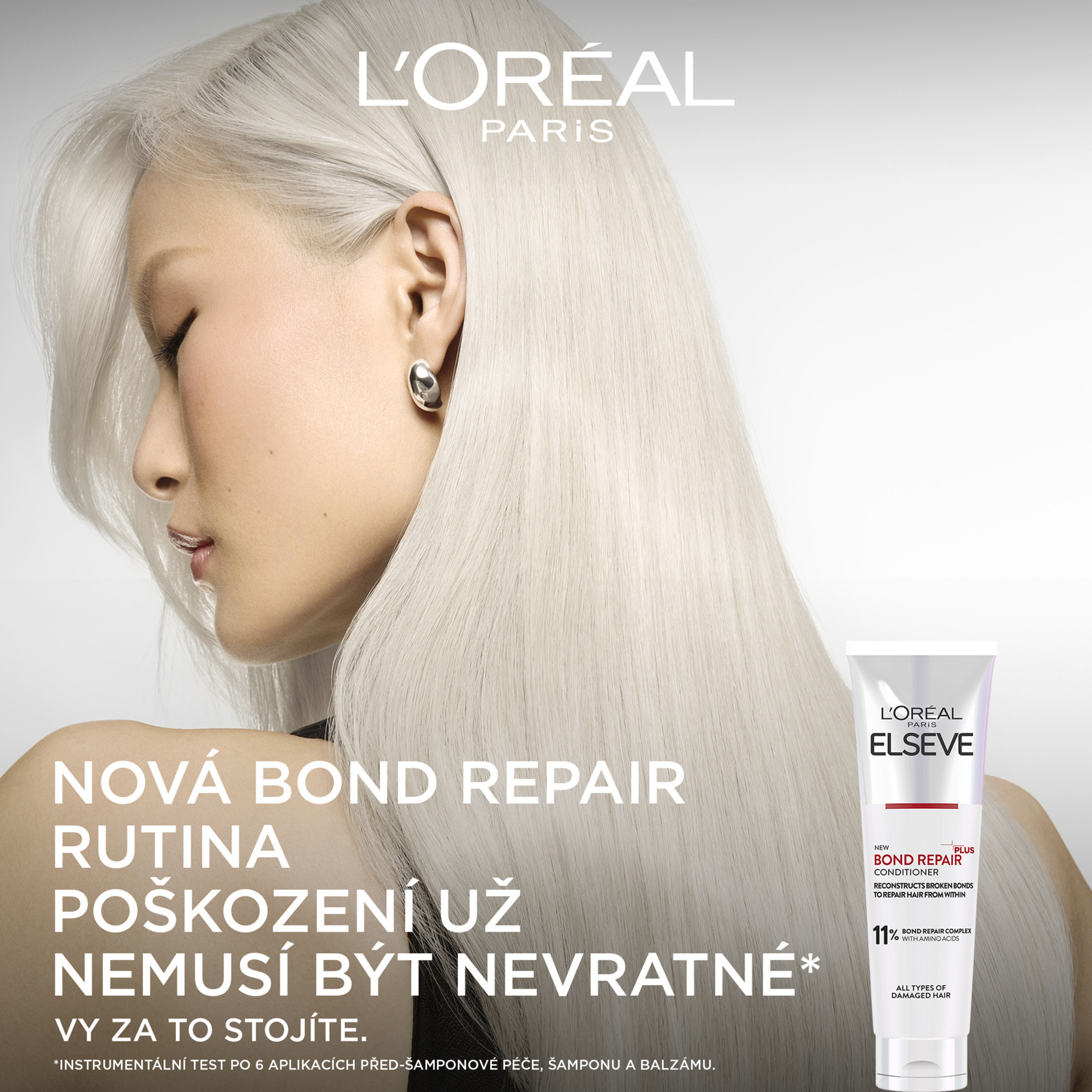 Historicky poprvé představujeme nejintenzivnější obnovu vlasů od L´Oréal Paris. Regenerační balzám obohacen o kyselinu citronovou, proniká pod povrch vlasového vlákna až do jeho středu, kde napomáhá napravovat a posilovat oslabené vlasové vazby. Výsledek? + 82% obnova*, až o 98% méně lámavosti**, +90% lesku***. Pro všechny typy poškozených vlasů.