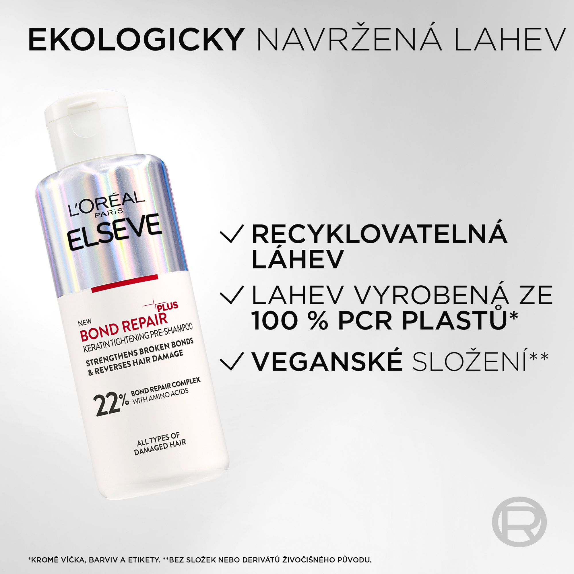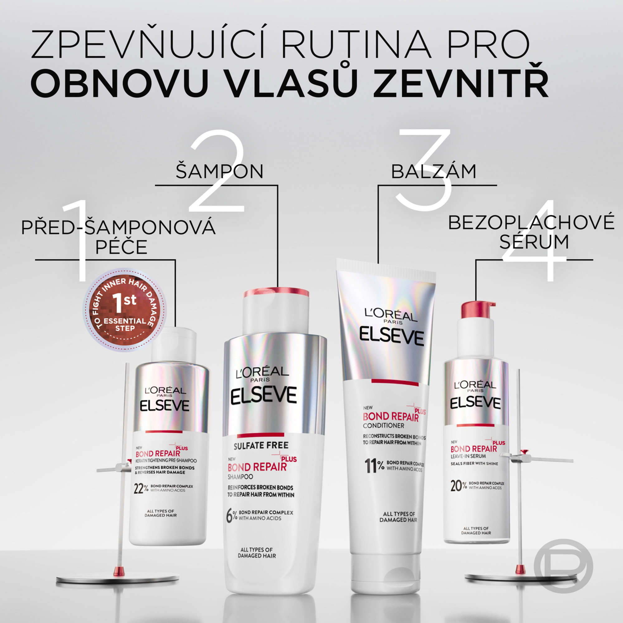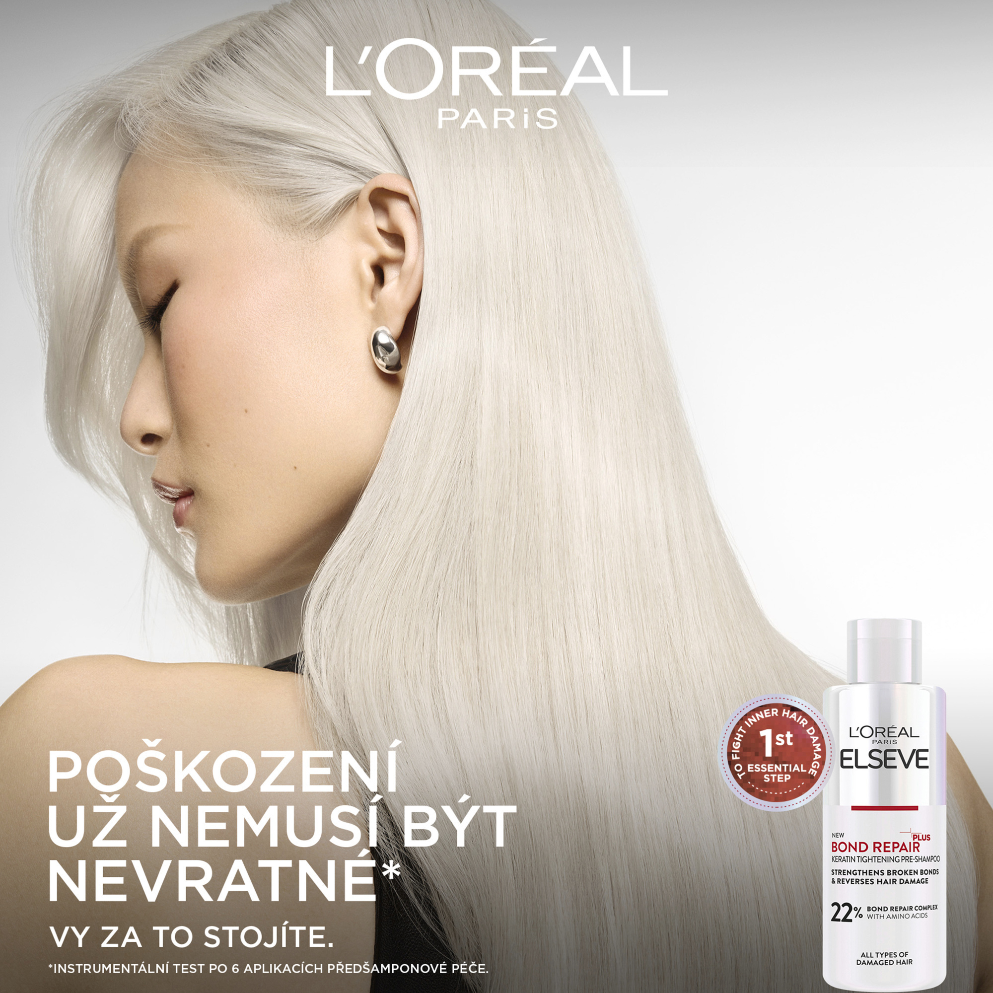Historicky poprvé představujeme nejintenzivnější obnovu vlasů od L´Oréal Paris. Regenerační před-šamponová péče obohacená o kyselinu citronovou, proniká pod povrch vlasového vlákna až do jeho středu, kde napomáhá napravovat a posilovat oslabené vlasové vazby. + 82 % obnova*, - 98 % lámavosti**, + 90 % lesku***. Pro všechny typy poškozených vlasů.