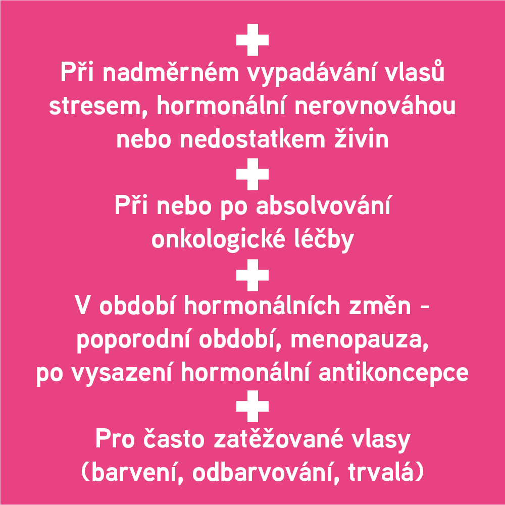 Ideální volba pro ženy po porodu, během menopauzy nebo po vysazení hormonální antikoncepce, kdy může docházet k výraznému padání vlasů v důsledku změny hladiny hormonů.