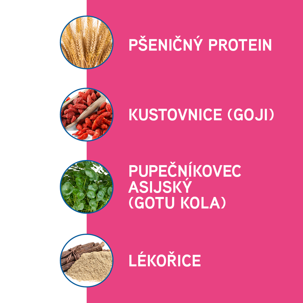 - Kustovnice čínská (Goji) – je bohatá na antioxidanty. Chrání vlasové buňky před poškozením, zlepšuje odolnost vlasů, intenzivně hydratuje a zároveň zanechává vlasy hebké a poddajné.