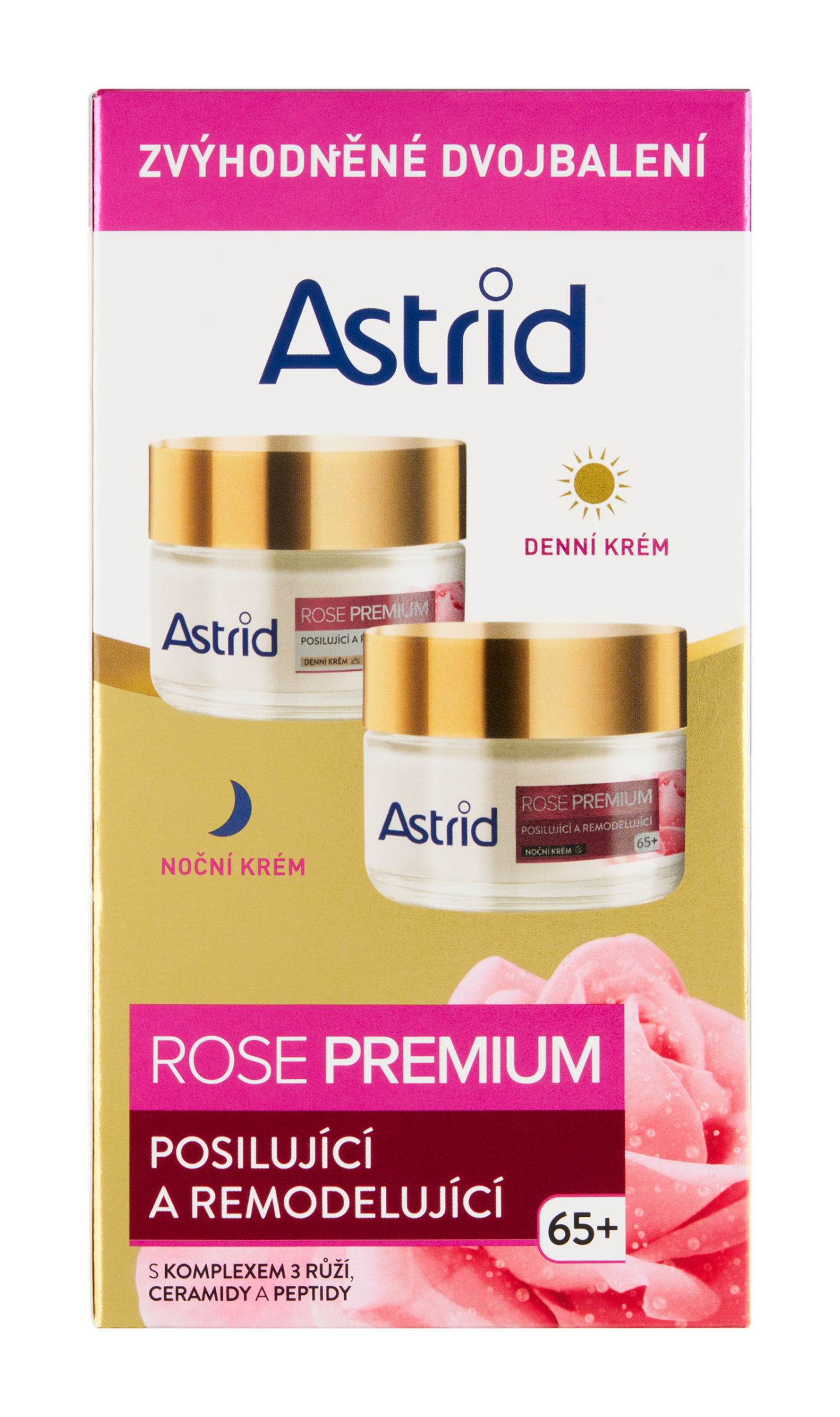 Astrid Rose Premium Posilující a remodelující krém byl vyvinutý speciálně pro potřeby velmi zralé pleti. Toto jedinečné složení, skládající se z inovativního komplexu 3 růží, ceramidů a peptidů, účinně hydratuje, zlepšuje elasticitu a zvýrazňuje kontury obličeje, takže vaše pleť vypadá viditelně revitalizovaná, pevnější a silnější.