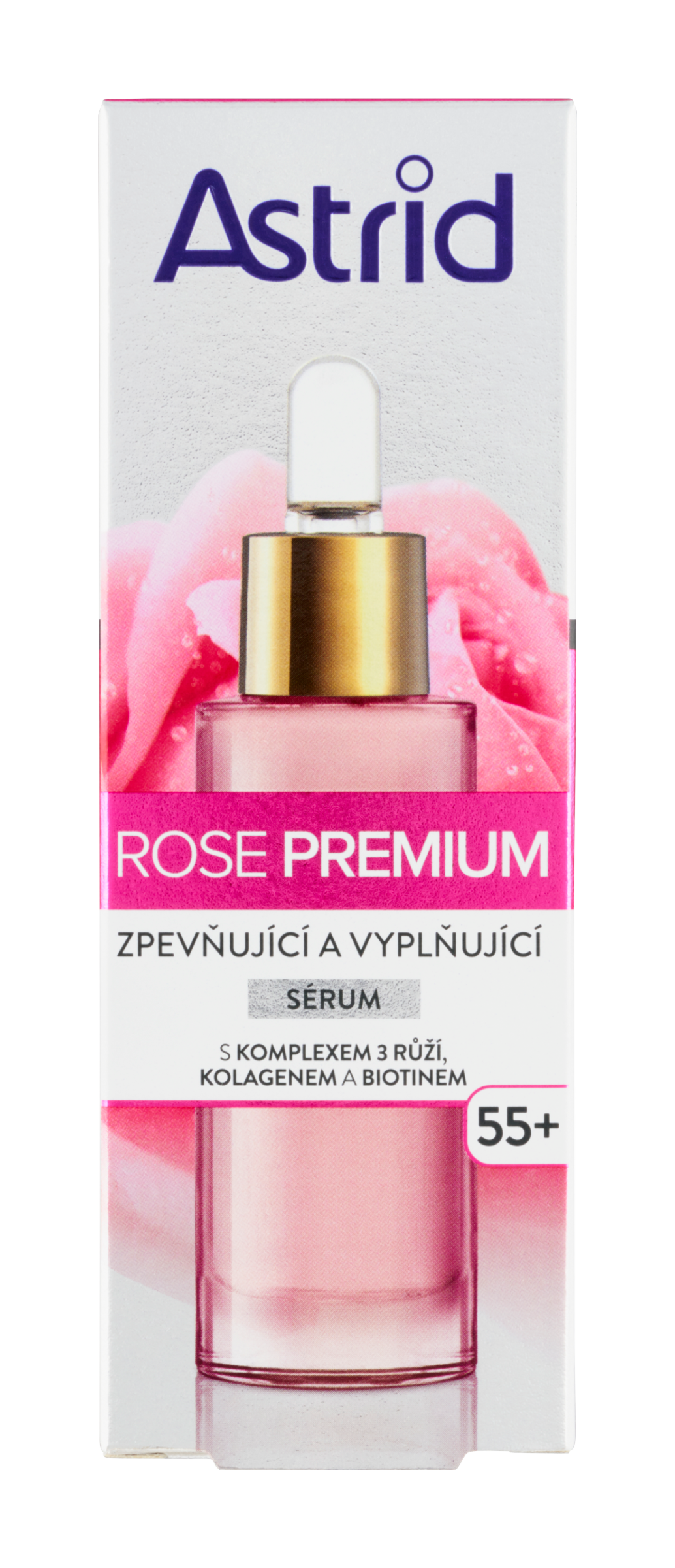 Astrid Rose Premium zpevňující a vyplňující sérum posiluje a vyživuje vaši pokožku každý den a zanechává ji pružnější a hydratovanou. Toto jedinečné složení, speciálně vyvinuté pro potřeby zralé pleti, se skládá z inovativního komplexu 3 růží, kolagenu a biotinu. Účinně hydratuje a zlepšuje elasticitu, takže pleť vypadá viditelně omlazená, pevnější a hladší. Komplex 3 růží má vynikající antioxidační a zklidňující účinky.
