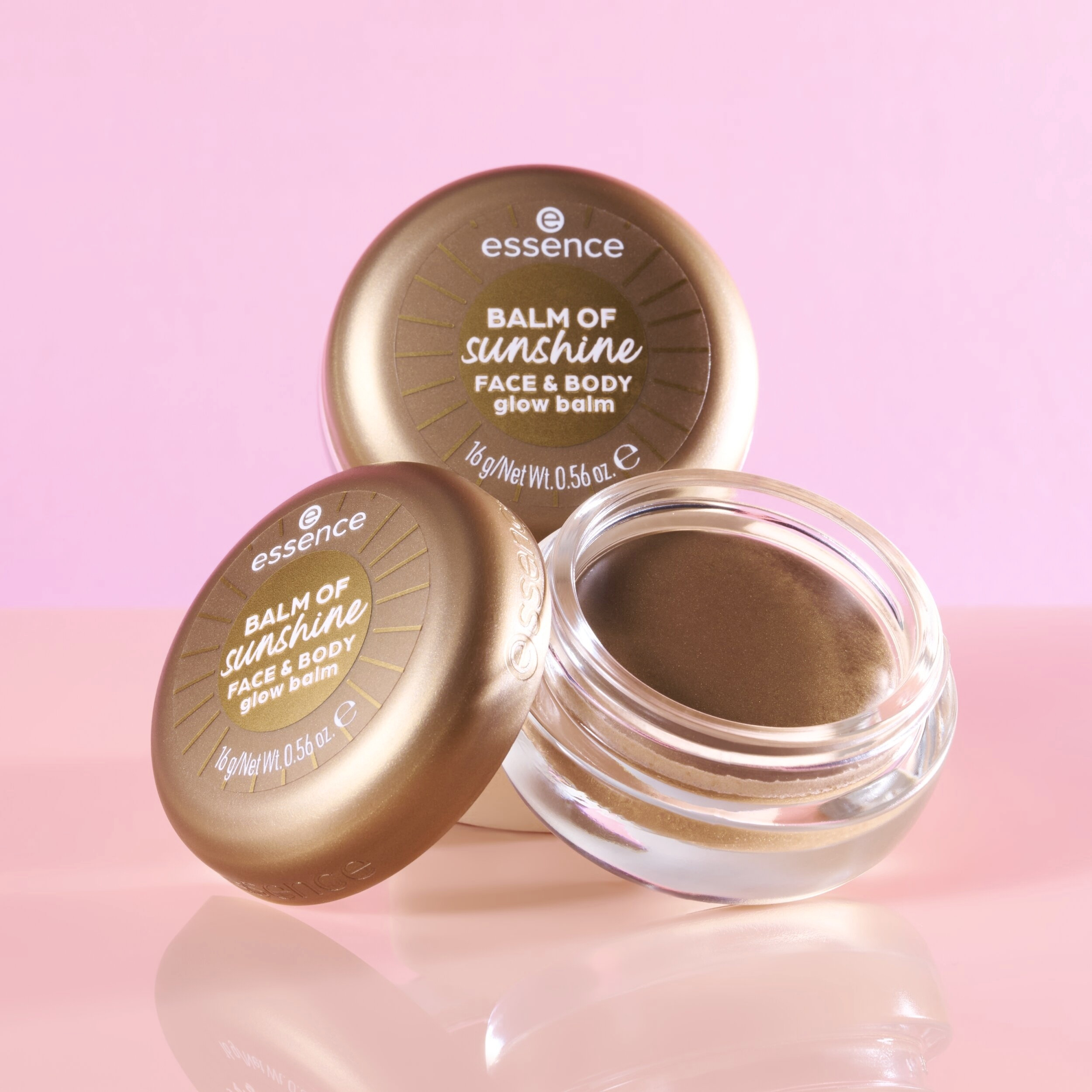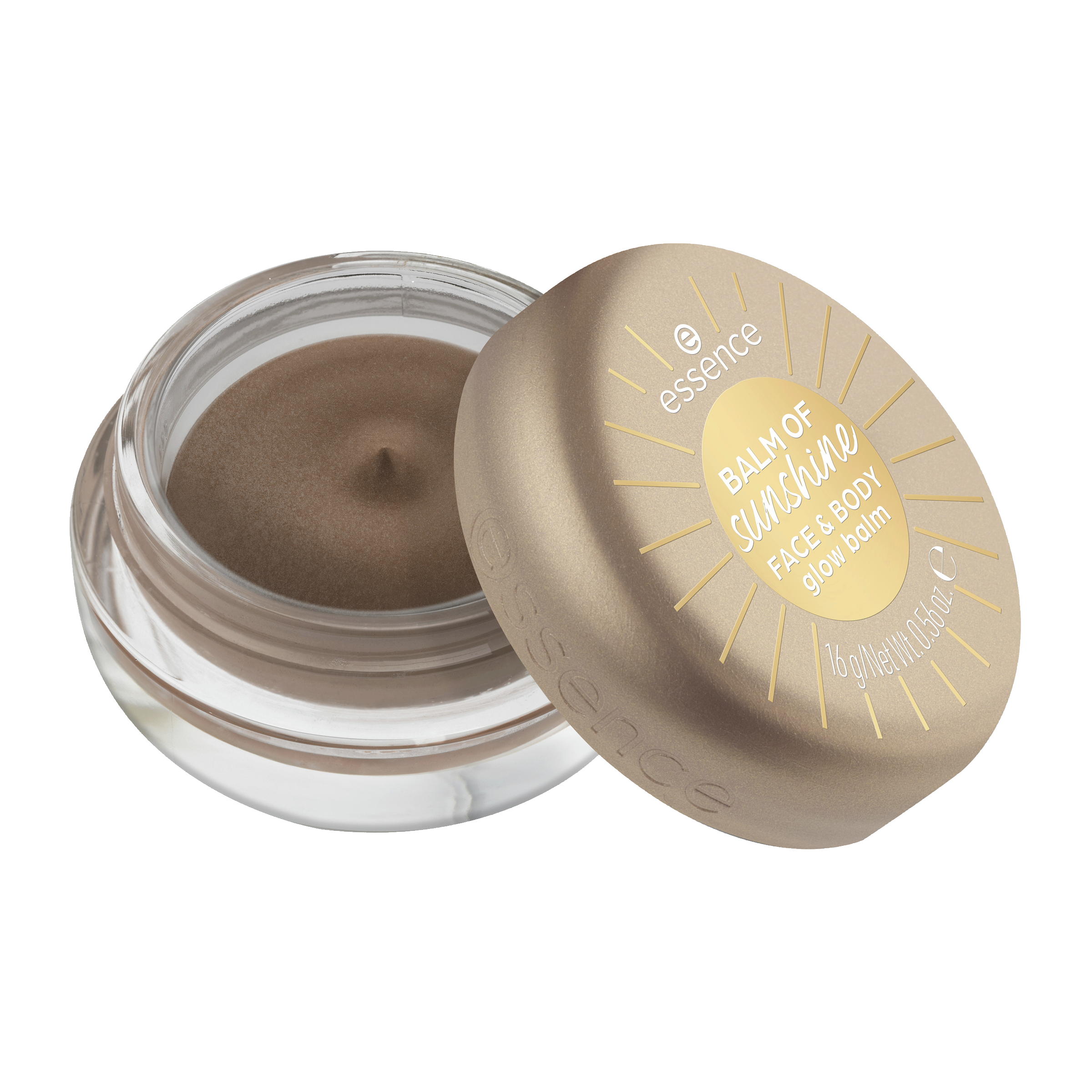 Připravte se zazářit s essence Balm of Sunshine Face & Body Glow Balm 20 Séduction du Soleil v bronzově zlatém odstínu s duhovým leskem. Hladká balzámová textura snadno klouže po obličeji i těle a zanechává průhledný svěží efekt, který nádherně zachycuje světlo a dodává pleti hřejivou, sluncem políbenou záři.