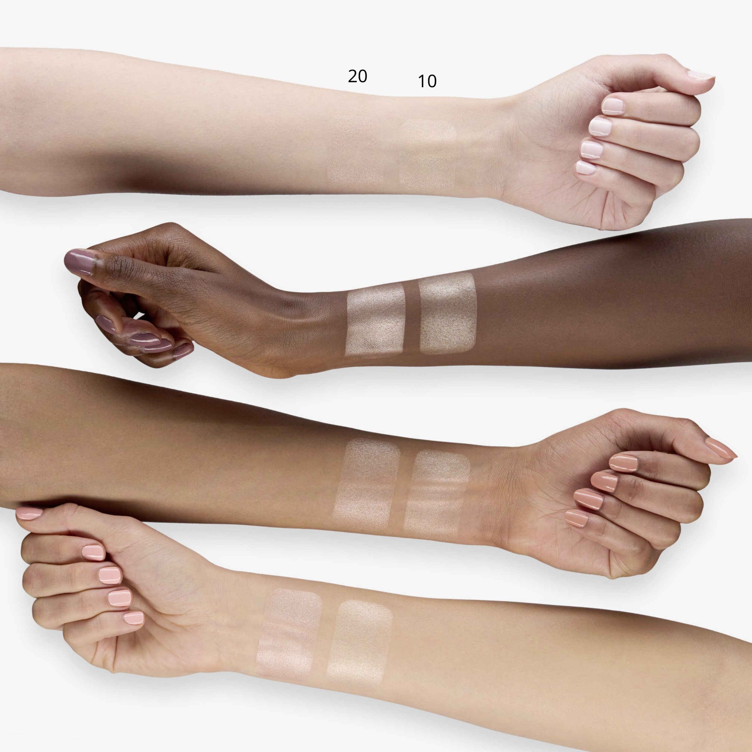 Rozjasňovač lze použít ke zdůraznění kontur obličeje: jednoduše naneste trochu textury na čelo, hřbet nosu, nad lícní kosti a/nebo nad horní střed rtů, abyste dokonale zvýraznili rysy obličeje.