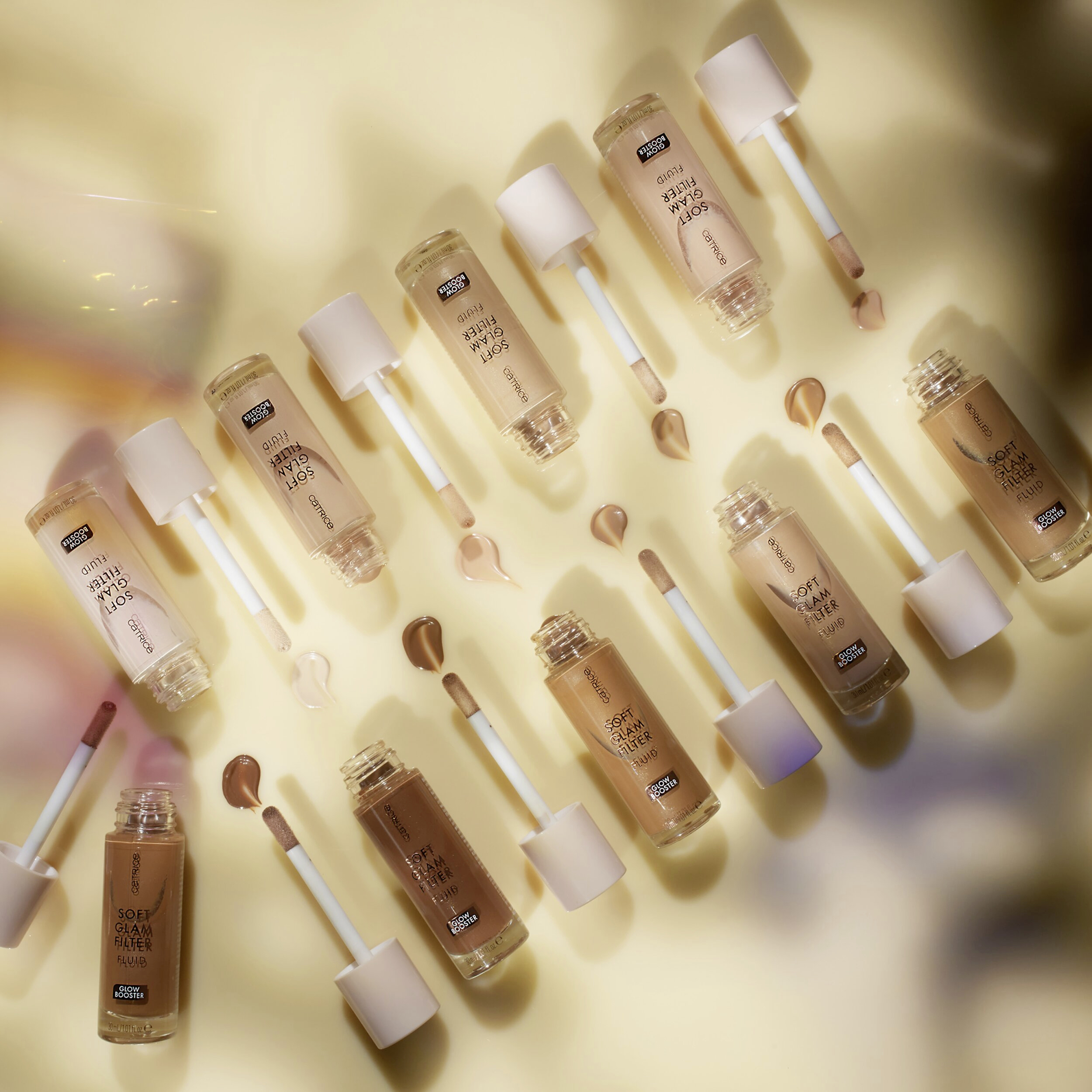 Jemně tónovaný rozjasňující podklad CATRICE Soft Glam Filter Fluid dodá vaší tváři efekt „jemného filtru“ pro sjednocenou zářivou pleť. A je to skutečně multifunkční produkt: Podklad lze aplikovat samostatně, jako podkladovou bázi pod make-up i přes něj, nebo k vytvoření cíleného rozjasnění. Složení s vitamínem E a skvalanem vyživuje a hydratuje pokožku.