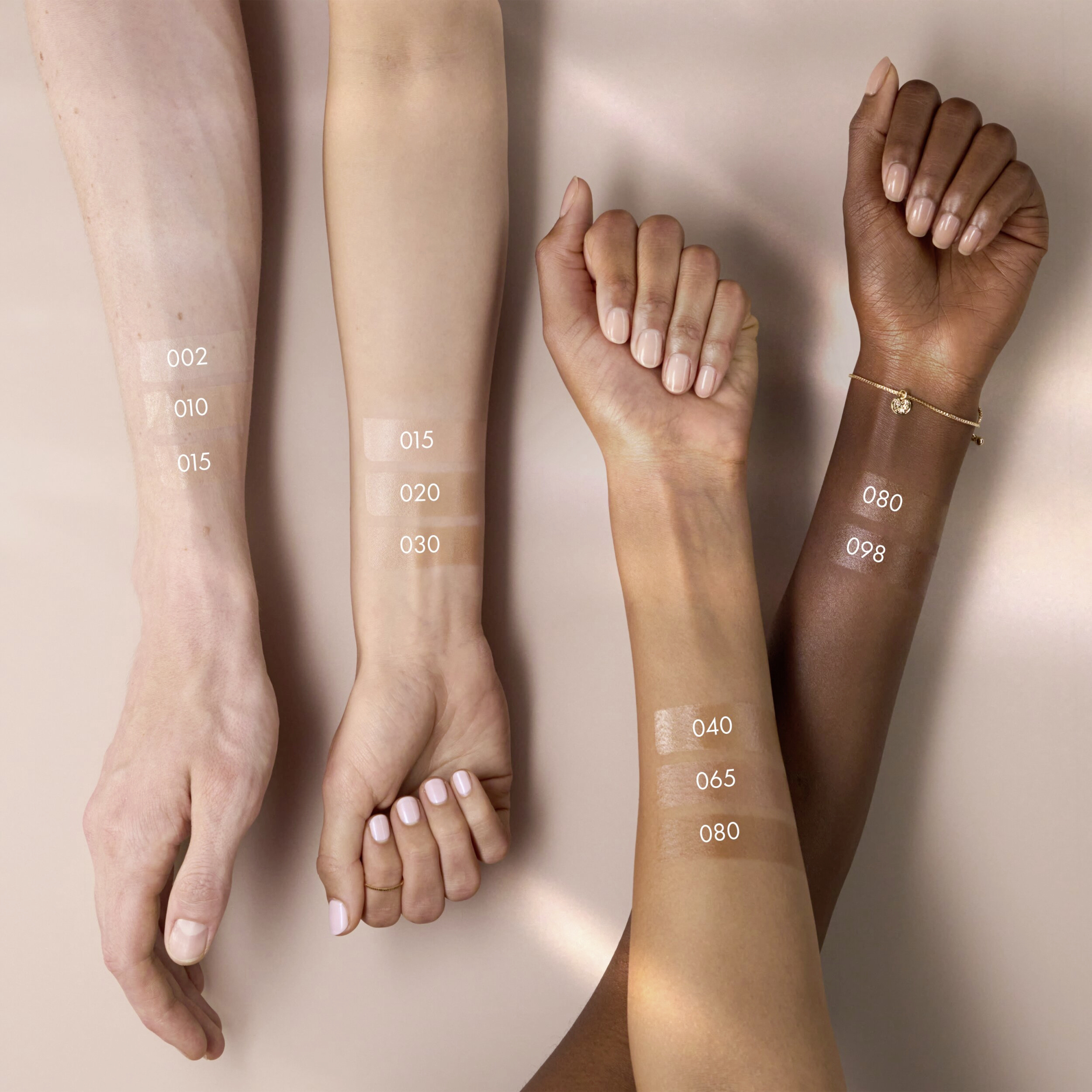 INGREDIENTS: AQUA (WATER), HYDROGENATED DIDECENE, ISODODECANE, GLYCERIN, PROPANEDIOL, SQUALANE, POLYGLYCERYL-4 OLEATE, HYDROGENATED STYRENE/ISOPRENE COPOLYMER, POLYGLYCERYL-3 POLYRICINOLEATE, MAGNESIUM SULFATE, TOCOPHEROL, SYNTHETIC FLUORPHLOGOPITE, TRIETHOXYCAPRYLYLSILANE, PENTAERYTHRITYL TETRA-DI-T-BUTYL HYDROXYHYDROCINNAMATE, PHENOXYETHANOL, CI 77163 (BISMUTH OXYCHLORIDE), CI 77491 (IRON OXIDES), CI 77492 (IRON OXIDES), CI 77499 (IRON OXIDES), CI 77891 (TITANIUM DIOXIDE).
