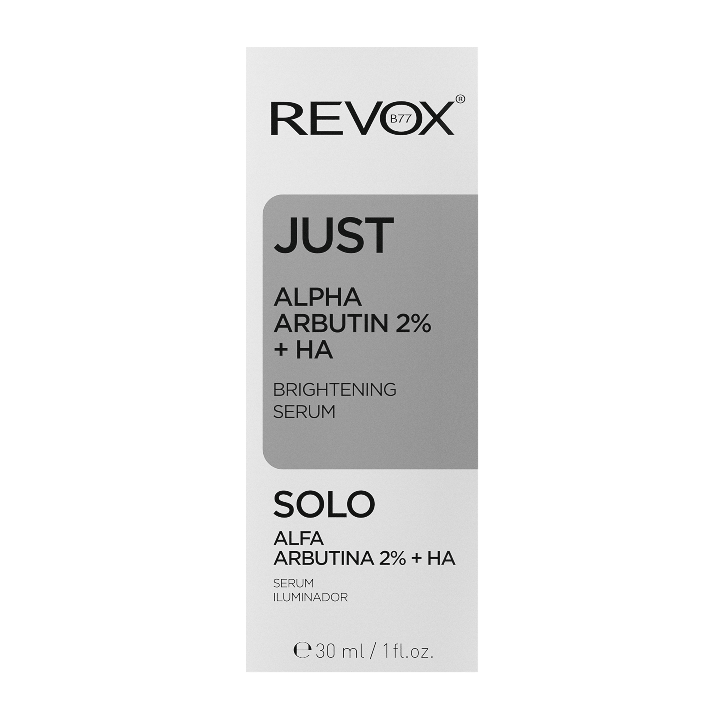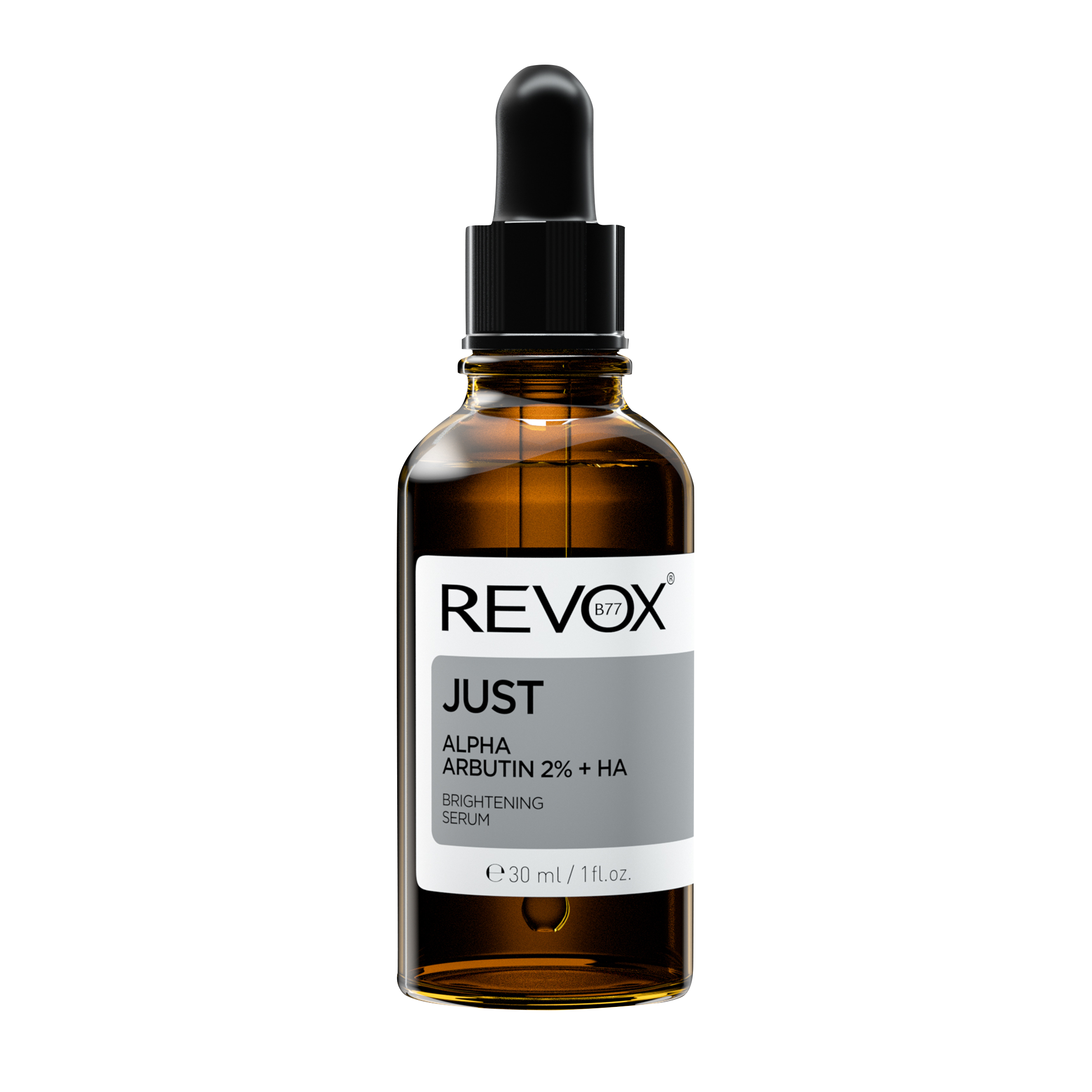 Revox Just alfa arbutin 2% rozjasňující sérum je rozjasňující sérum na obličej a krk. Purifikovaný alfa arbutin je jemná, ale velmi účinná rozjasňující látka. Ve vysoké 2% koncentraci účinně působí na snížení produkce pigmentu v pleti, zabraňuje další pigmentaci a vyrovnává tón pleti. Toto pokročilé složení je obohaceno o kyselinu hyaluronovou pro dodatečnou výživu a komfort pleti. Přípravek se zaměřuje na zarudnutí po skvrnách, stařecké a sluneční skvrny a pigmentové jizvy po akné. Je vhodný pro všechny typy pleti.