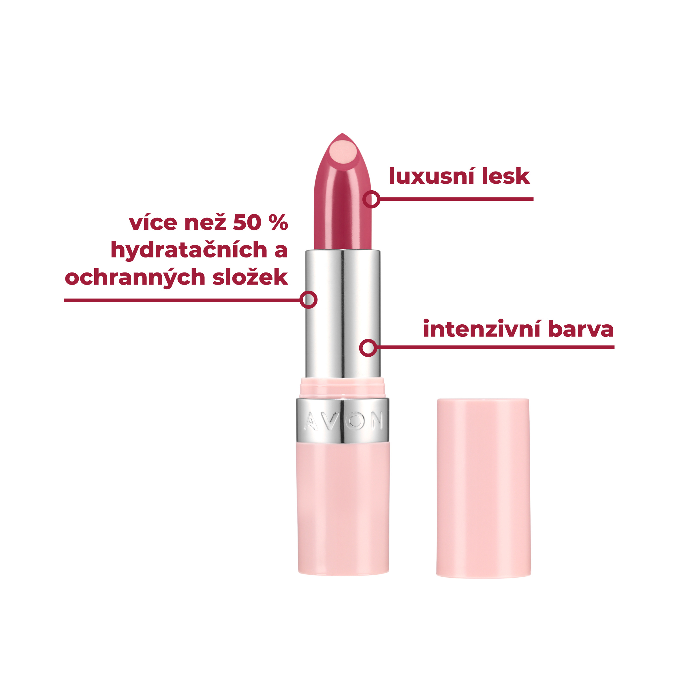 Rtěnka s luxusním leskem, intenzivní barvou a více než 50 % hydratačních a ochranných složek, SPF 20.