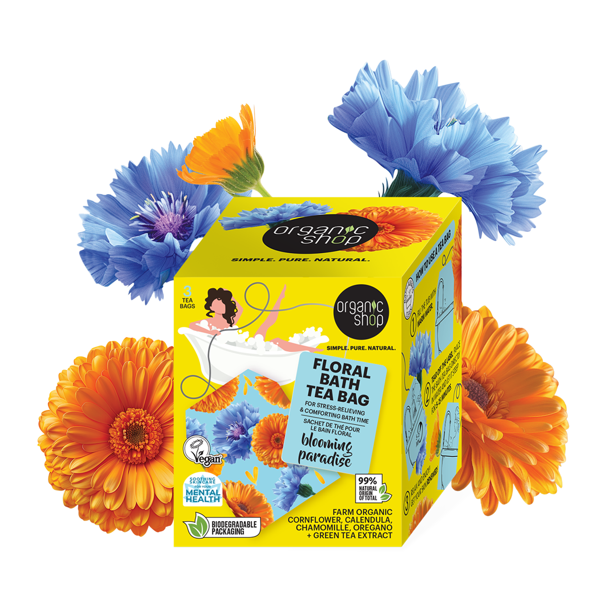 Nová koupelová zábava, po které se budete cítit báječně a vnitřně klidně! Květy jako kukuřice a měsíček se stanou vaší hydratační péčí a zanechají vaši pokožku osvěženou a mysl obnovenou. Zklidněte, zjemněte a zbavte se stresu!