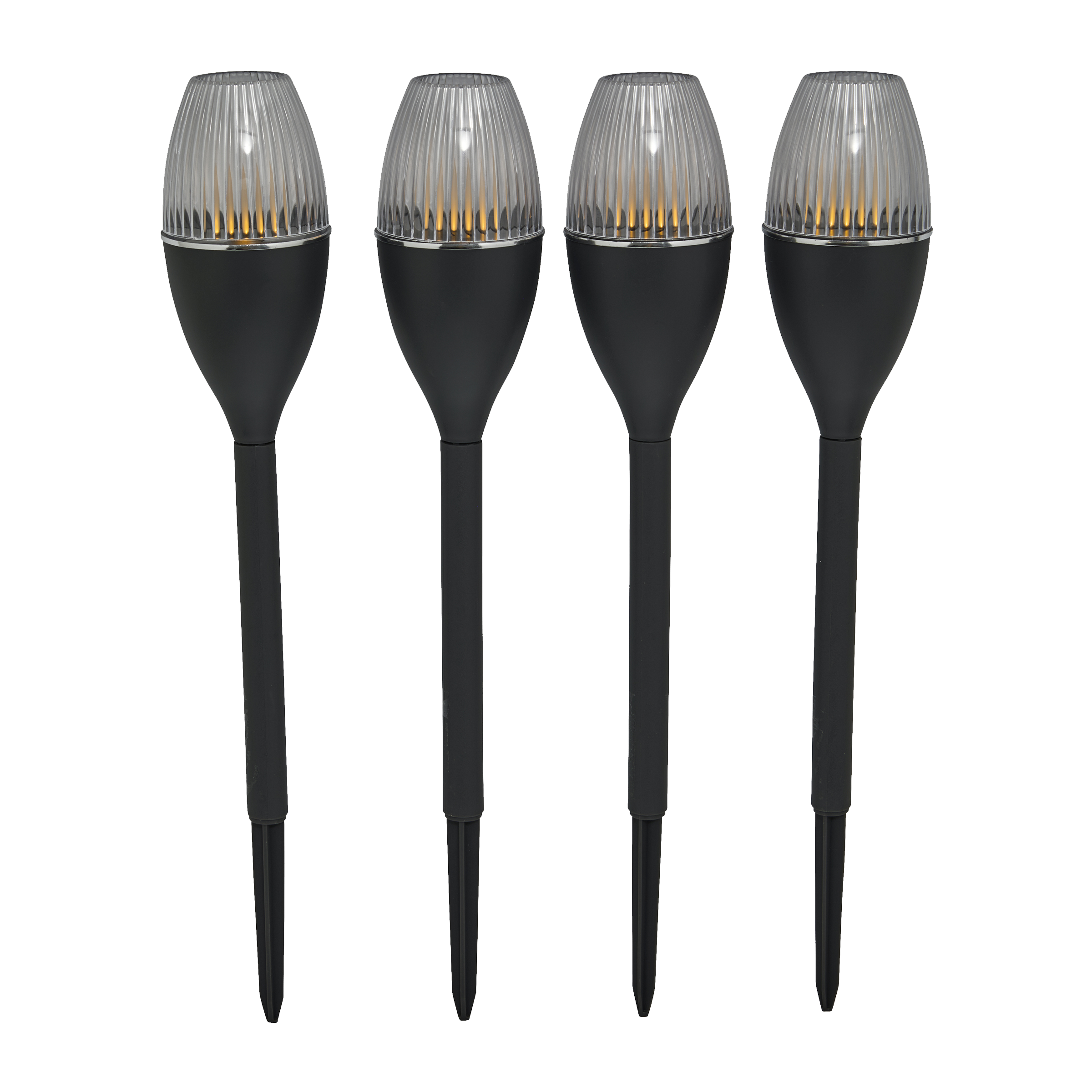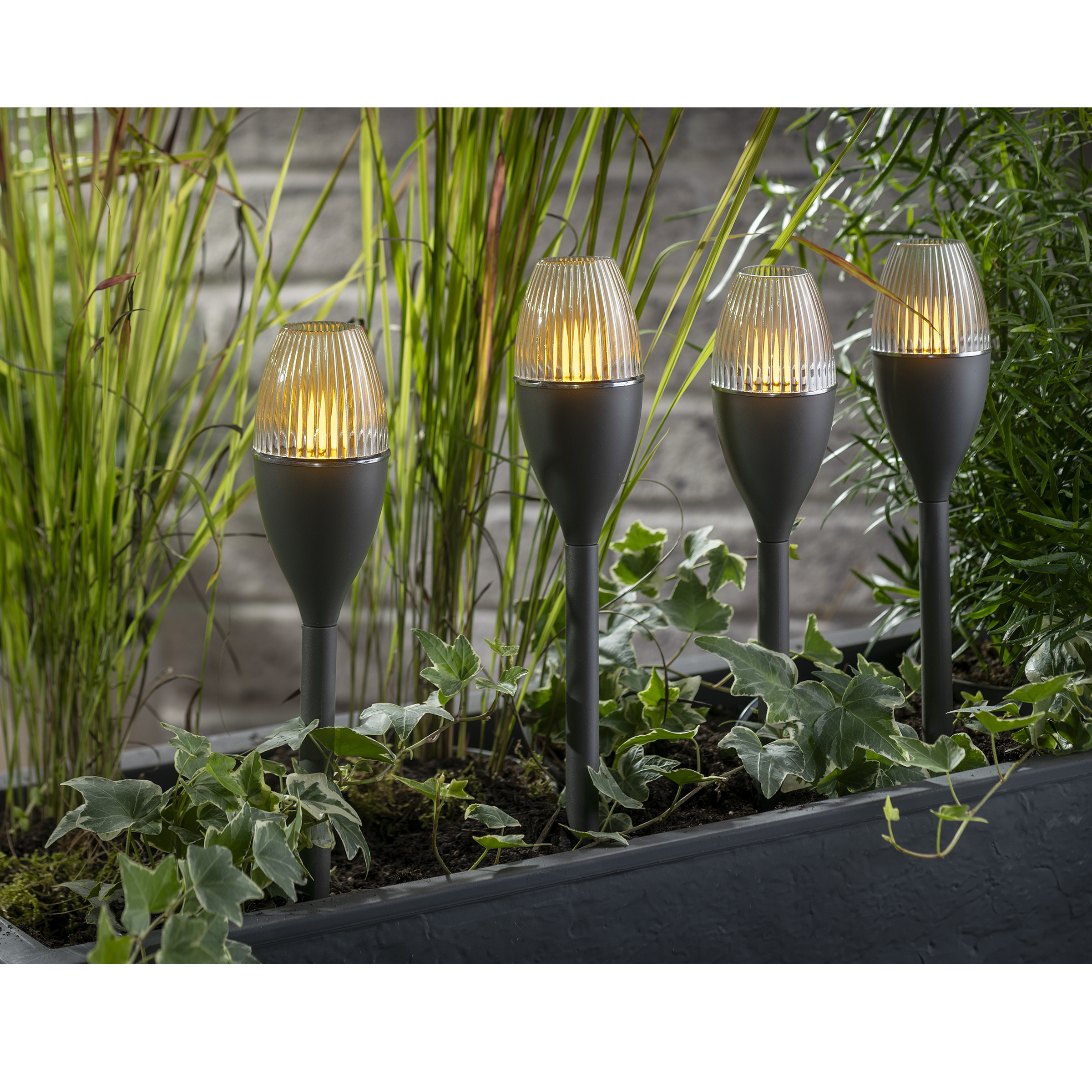 Sada 4 LED solárních zahradních světel s efektem svíčky vytvoří útulnou atmosféru na vaší zahradě, terase nebo balkoně. Každé světlo je vysoké cca 28,5 cm a je vybaveno soumrakovým senzorem, který automaticky aktivuje osvětlení po setmění. Integrovaná Ni-MH baterie se během dne dobíjí sluneční energií.