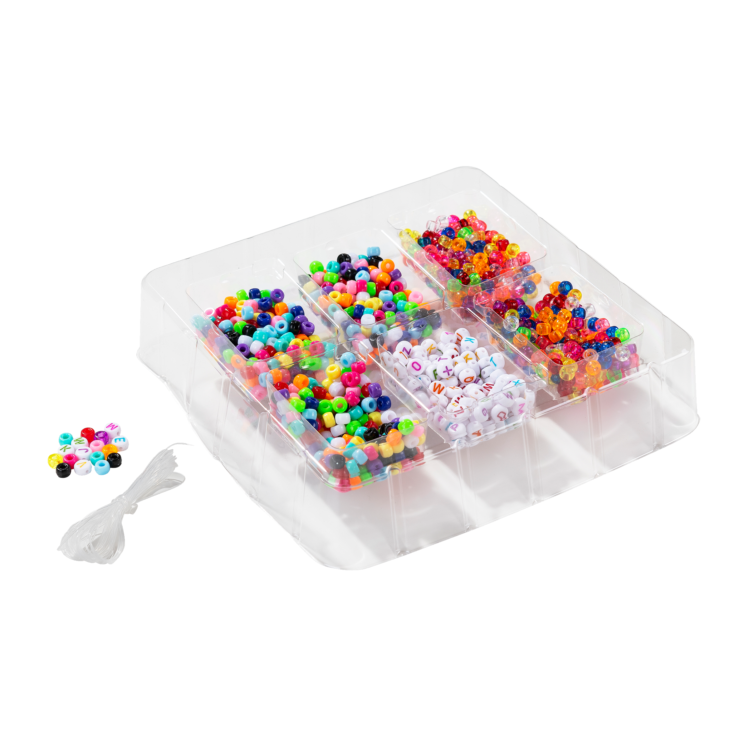 - Přibližně 150 korálků s písmeny v 7 barvách pro tvorbu nápisů a jmen